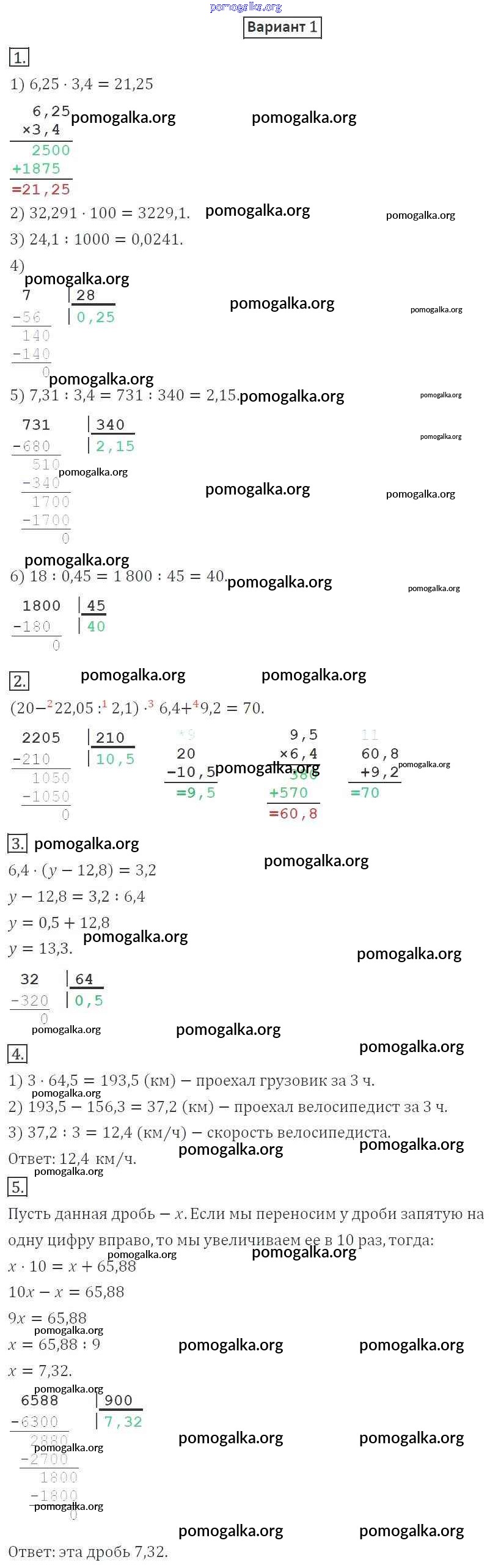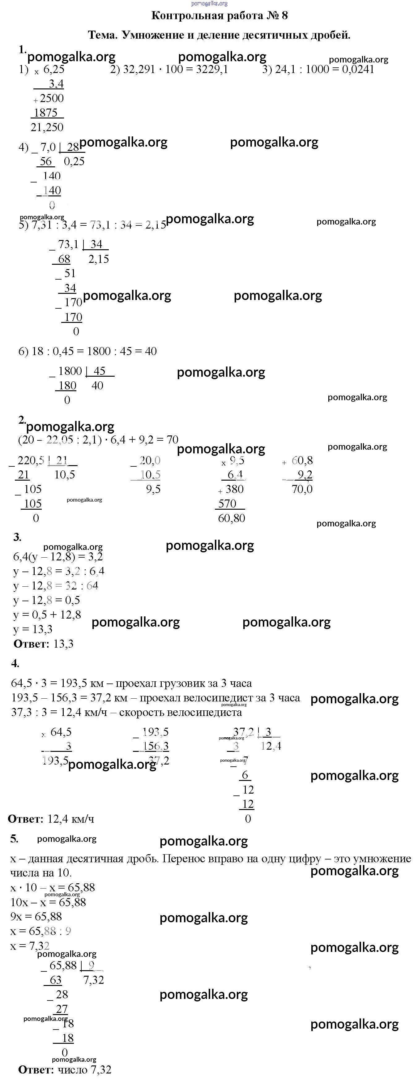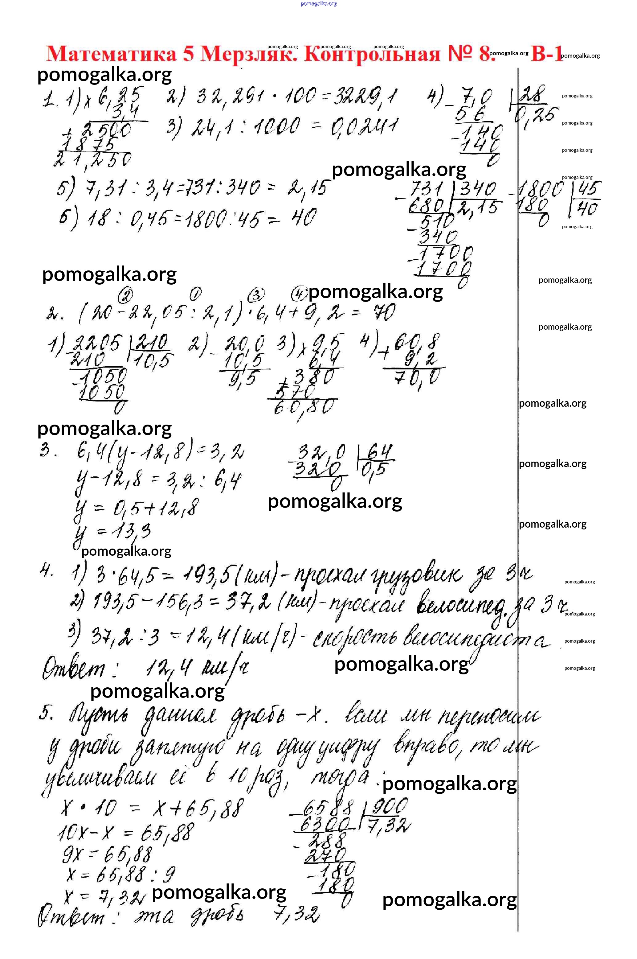 Готовые ответы - Математика 5 класс Дидактические материалы Мерзляк А.Г. - кр №8 контрольная работа вариант 1