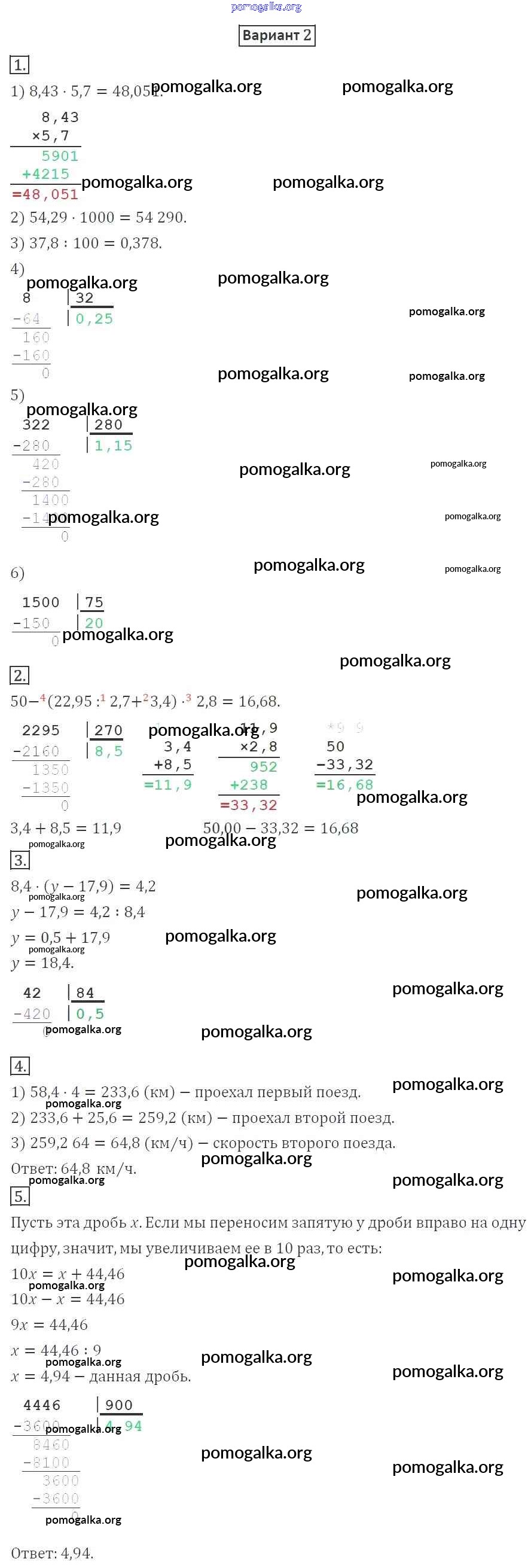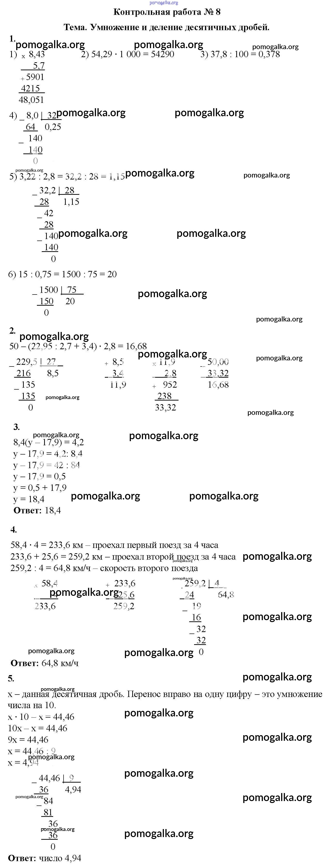 Готовые ответы - Математика 5 класс Дидактические материалы Мерзляк А.Г. - кр №8 контрольная работа вариант 2