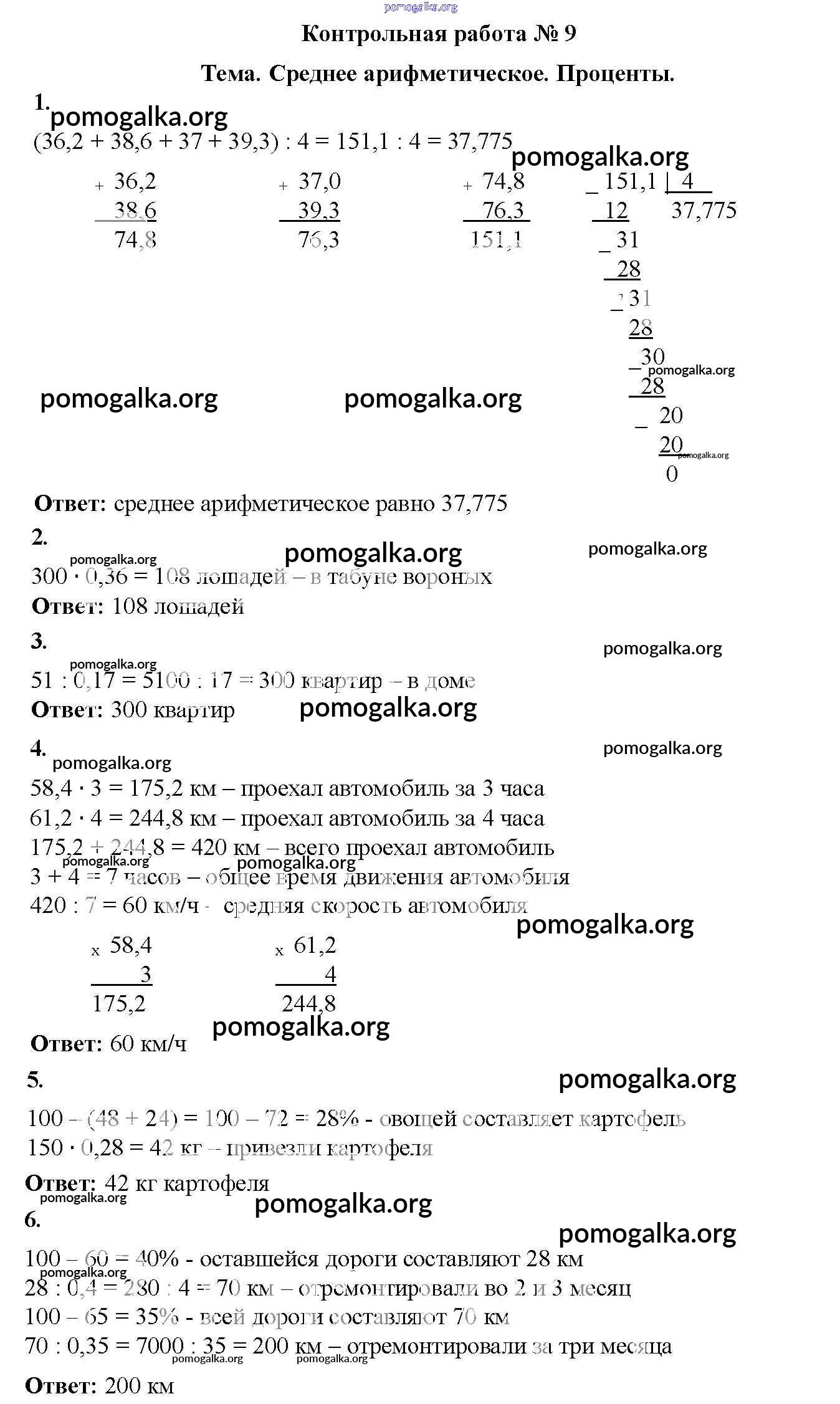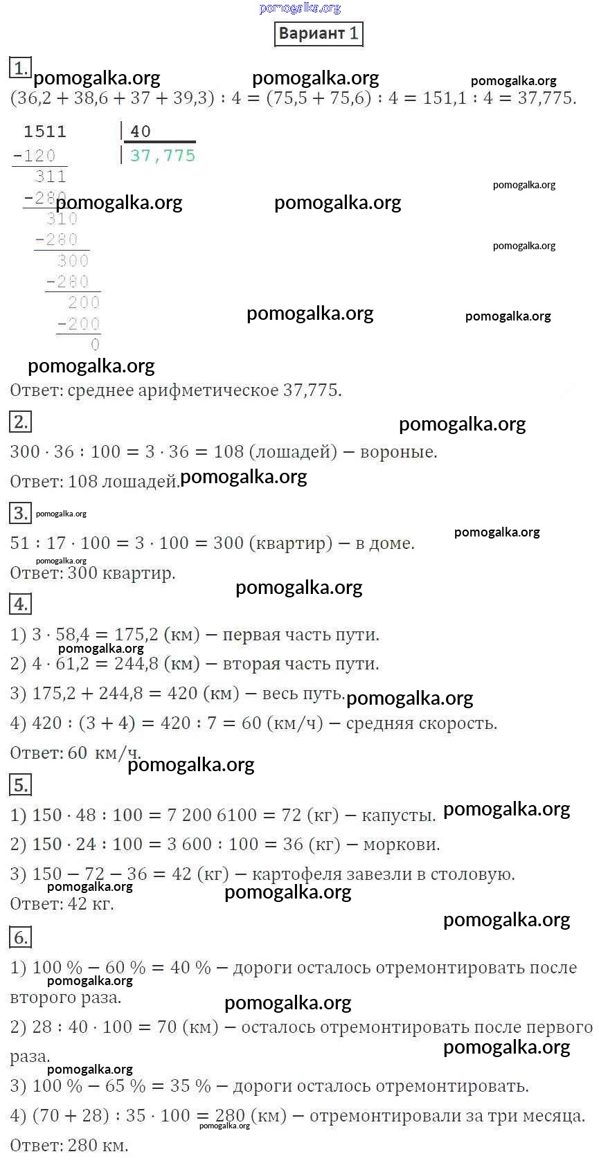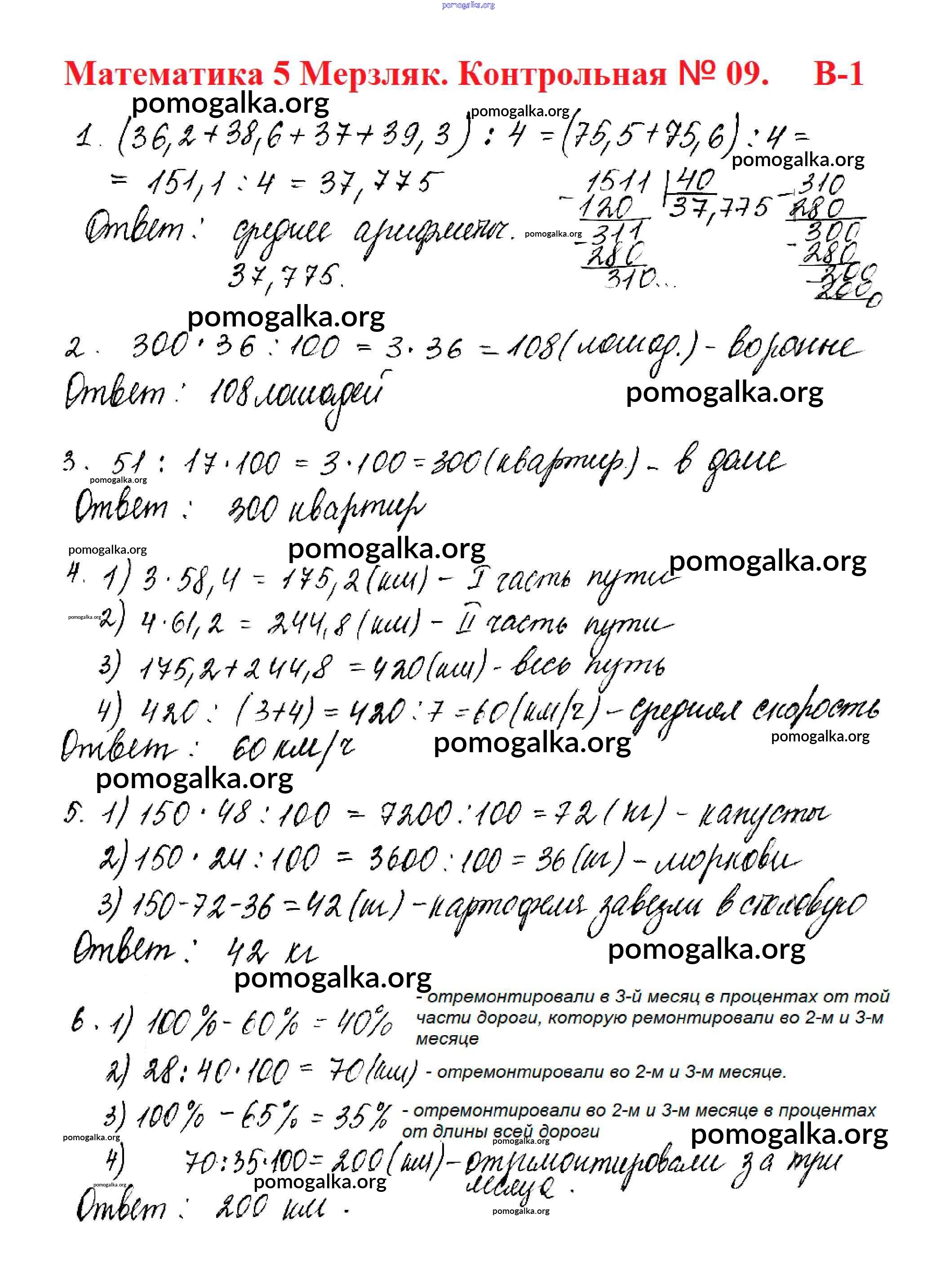 Готовые ответы - Математика 5 класс Дидактические материалы Мерзляк А.Г. - кр №9 контрольная работа вариант 1