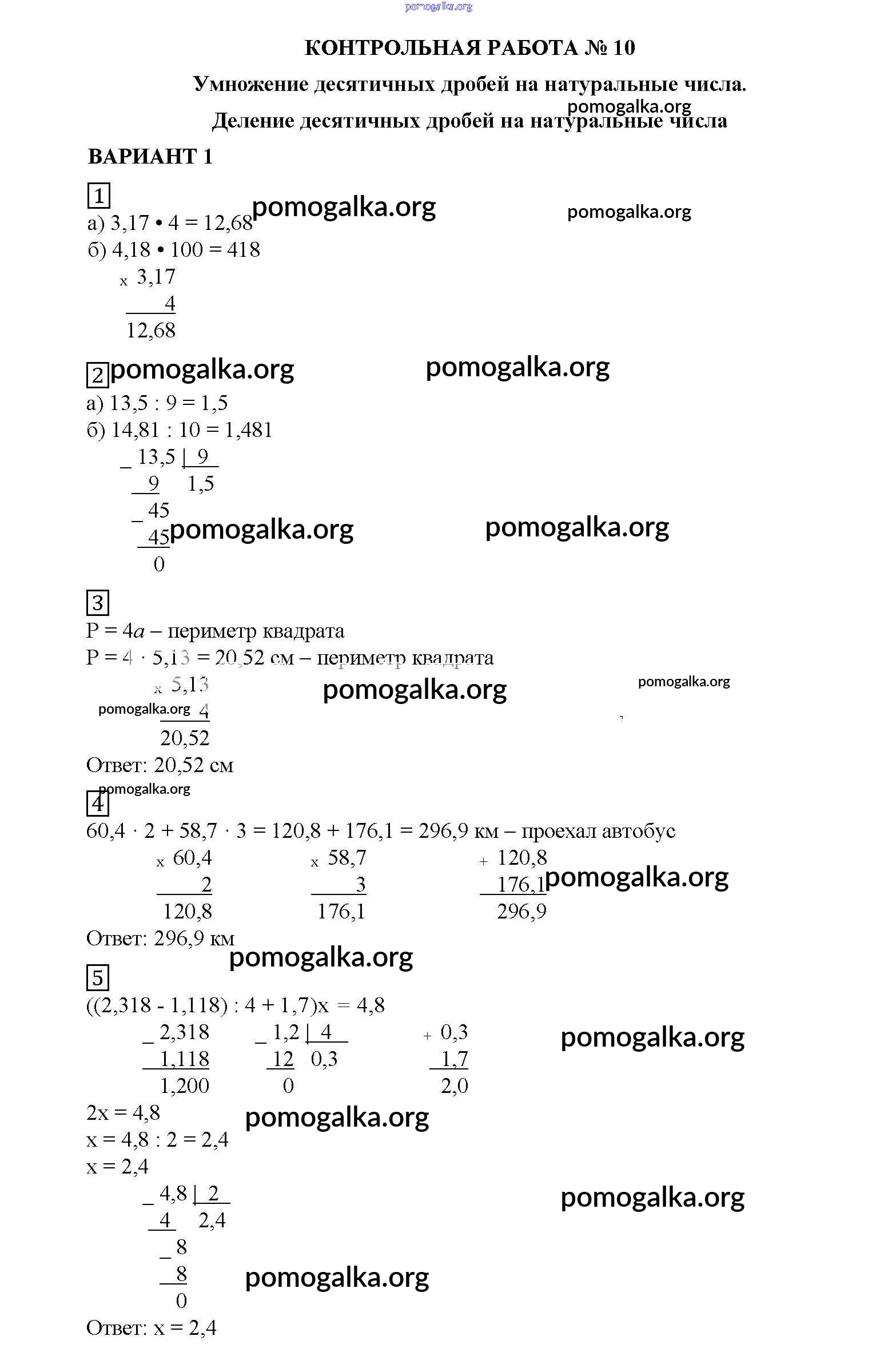 КР №10. Умножение и деление десятичных дробей на натуральные числа