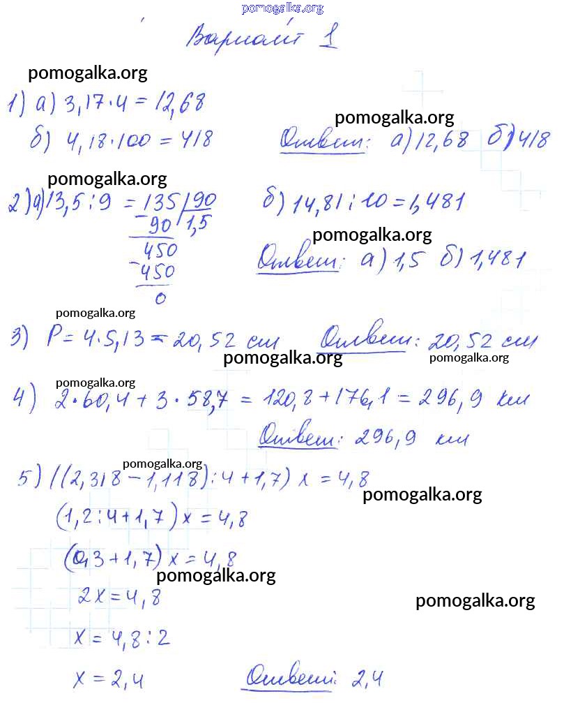 Готовые ответы - Математика 5 класс Дидактические материалы Попов М.А. (к уч. Виленкина) - кр №10 контрольная работа вариант №1