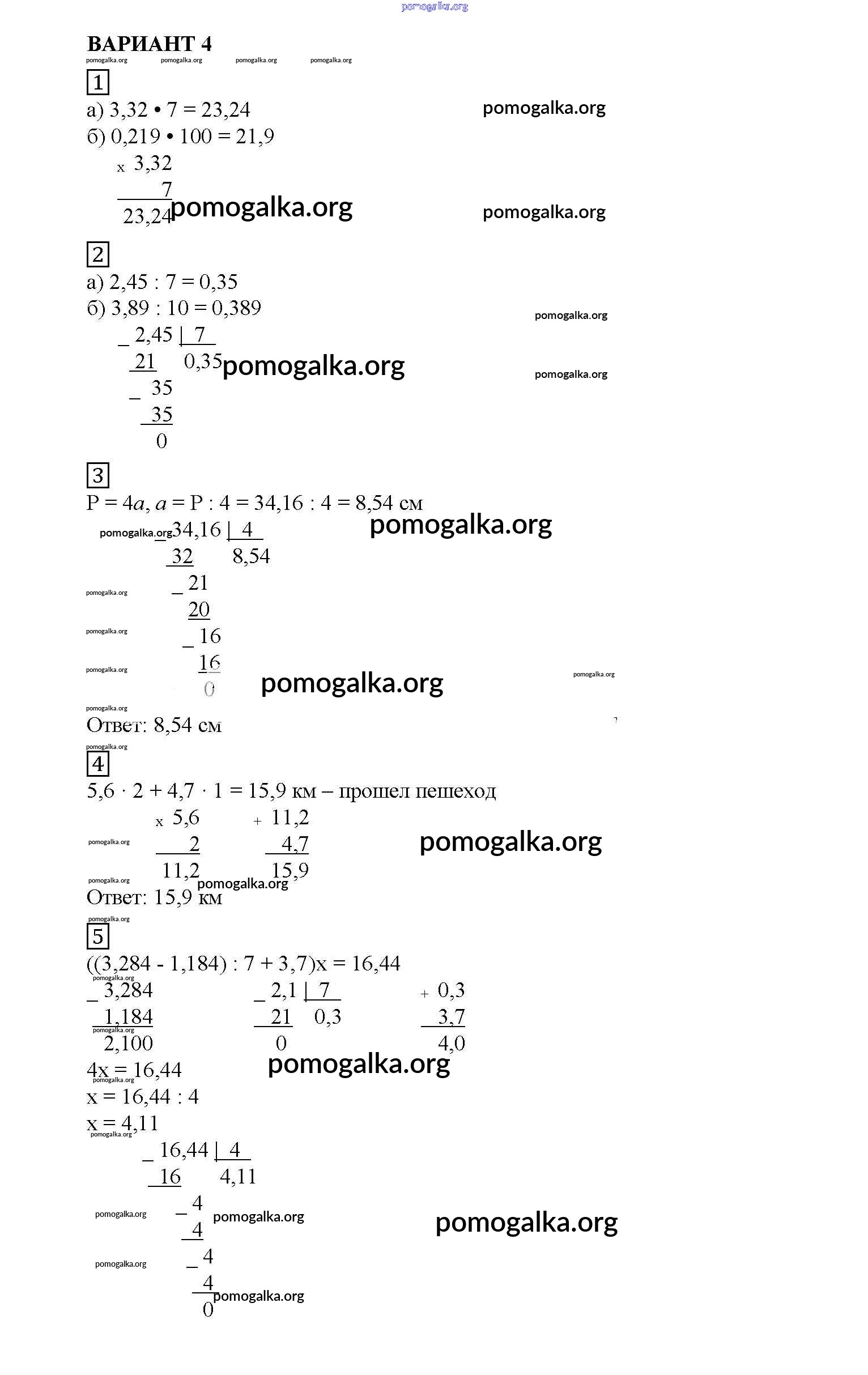 Готовые ответы - Математика 5 класс Дидактические материалы Попов М.А. (к уч. Виленкина) - кр №10 контрольная работа вариант №4