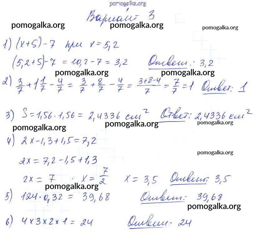 КР №3. Числовые и буквенные выражения. Уравнение
