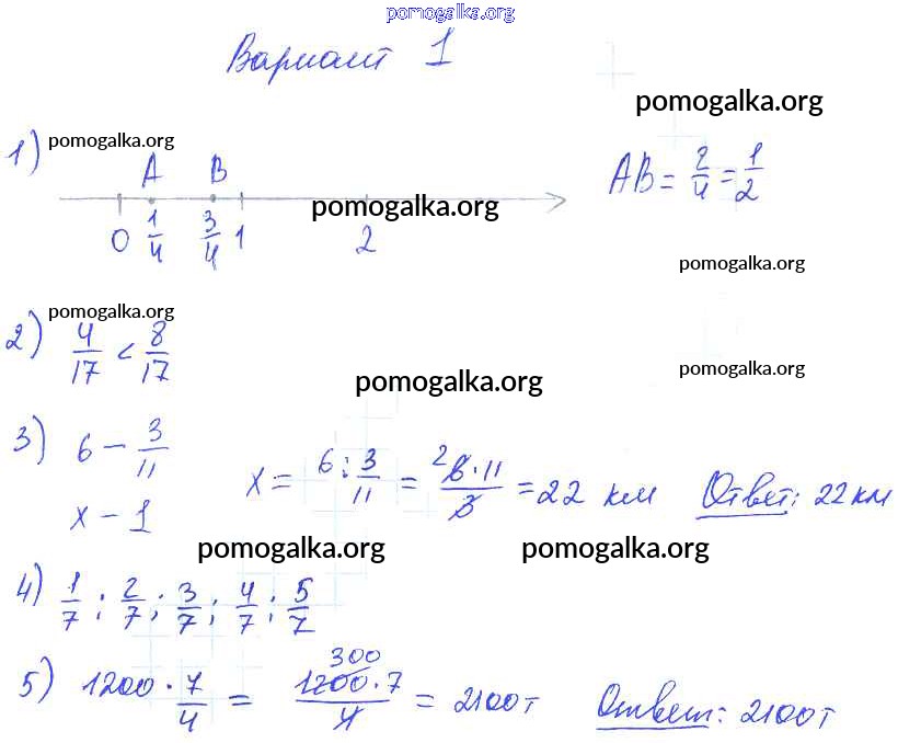Готовые ответы - Математика 5 класс Дидактические материалы Попов М.А. (к уч. Виленкина) - кр №7 контрольная работа вариант №1