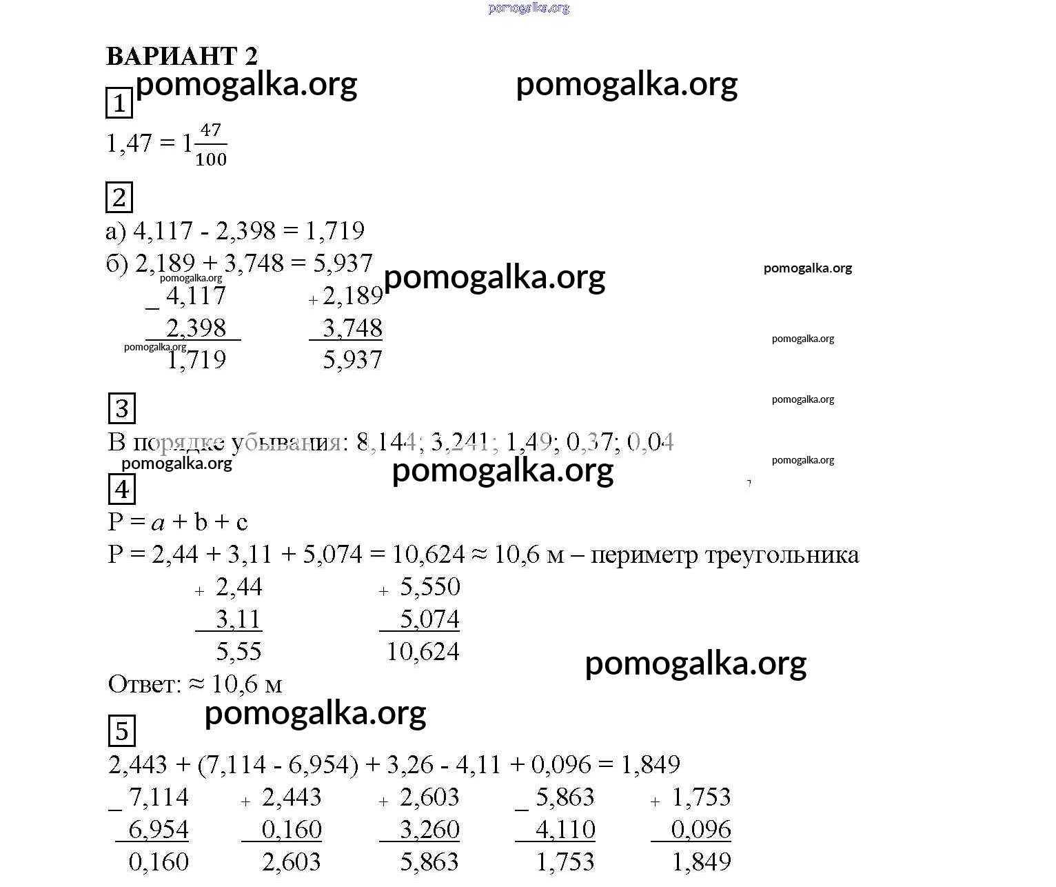 СР №32. Сложение и вычитание десятичных дробей