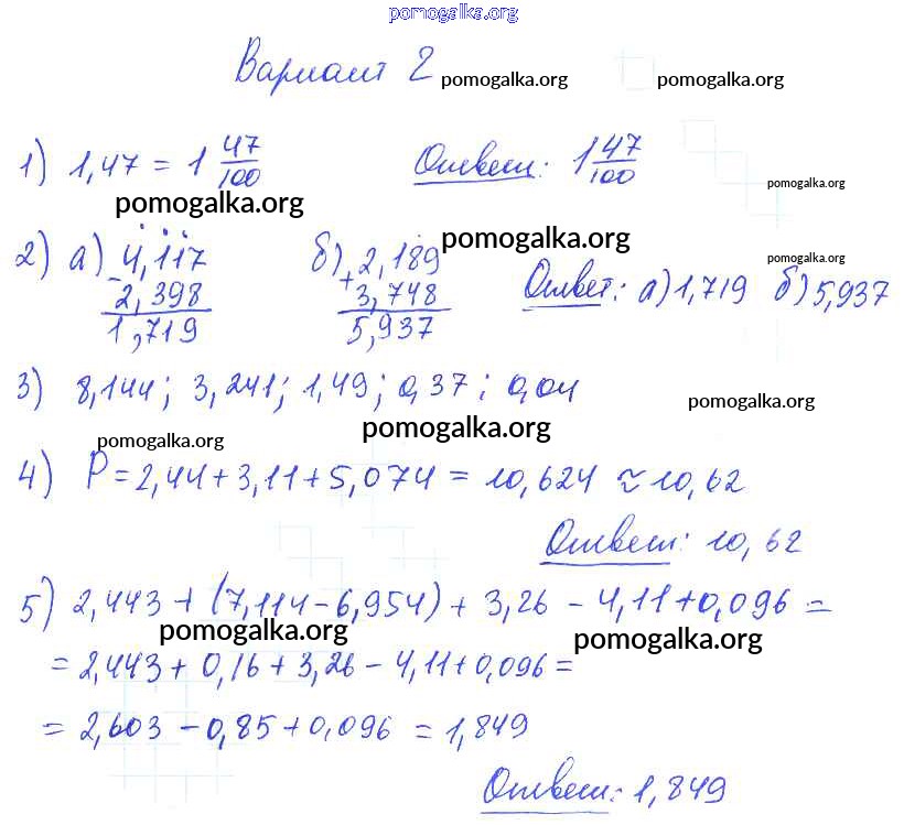 Готовые ответы - Математика 5 класс Дидактические материалы Попов М.А. (к уч. Виленкина) - кр №9 контрольная работа вариант №2