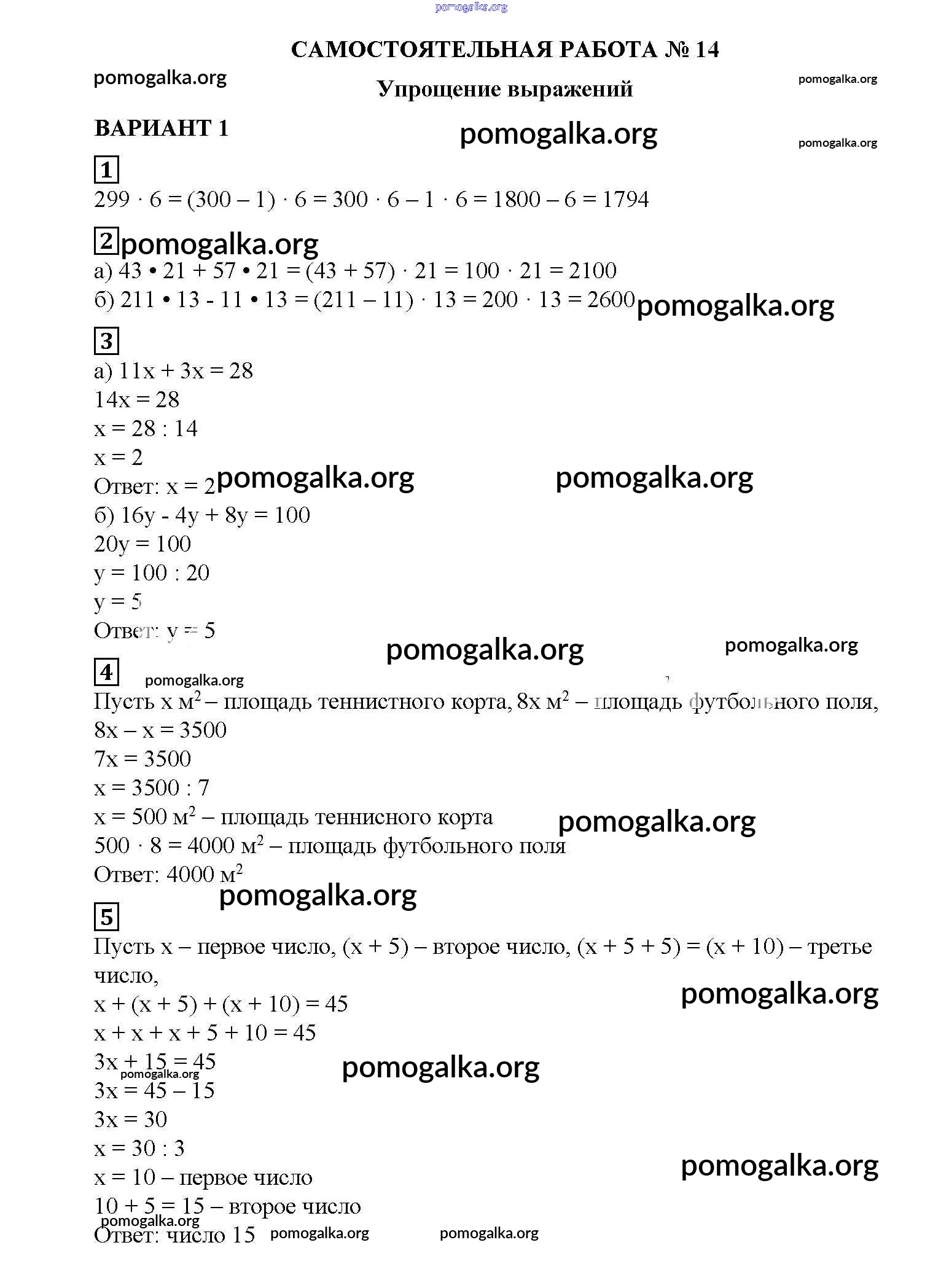 Готовые ответы - Математика 5 класс Дидактические материалы Попов М.А. (к уч. Виленкина) - ср №14 самостоятельная работа вариант №1