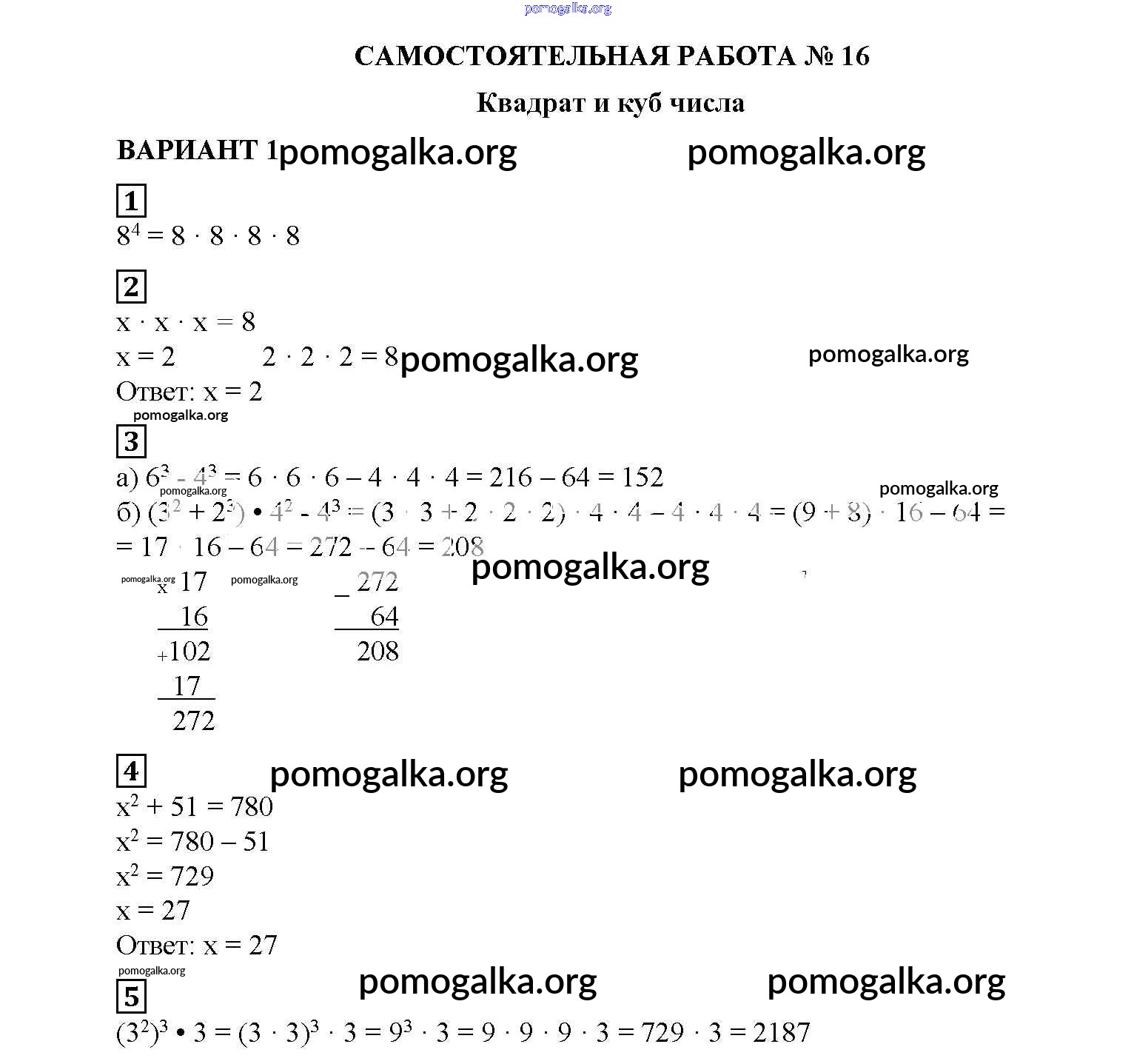 СР №16. Квадрат и куб числа