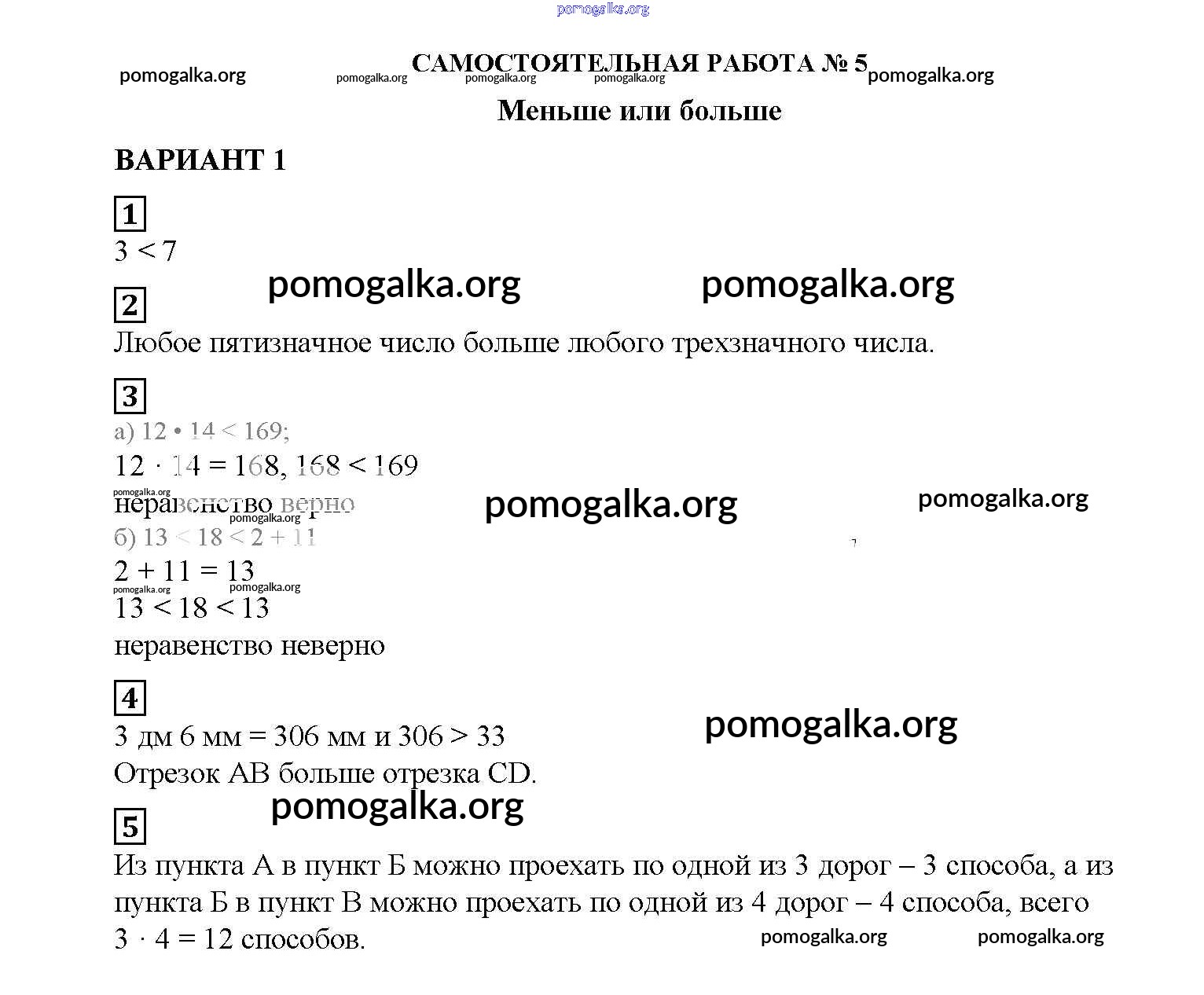 Готовые ответы - Математика 5 класс Дидактические материалы Попов М.А. (к уч. Виленкина) - ср №5 самостоятельная работа вариант №1