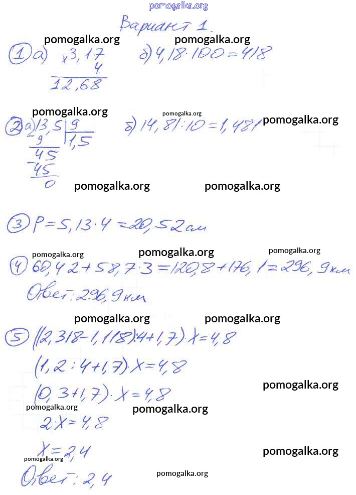 Готовые ответы - Математика 5 класс контрольные и самостоятельные работы Попов М.А. (к уч. Виленкина Н.Я.) - кр-10. вариант контрольная работа 1