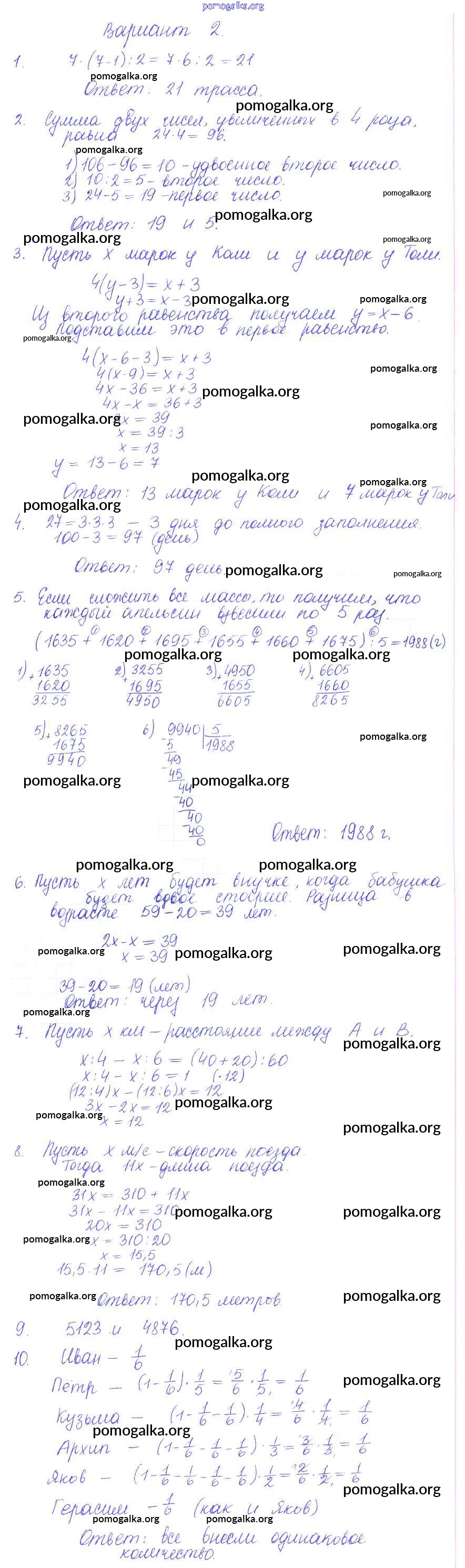 Готовые ответы - Математика 5 класс контрольные и самостоятельные работы Журавлев С.Г. - ср-39. вариант самостоятельная работа 2