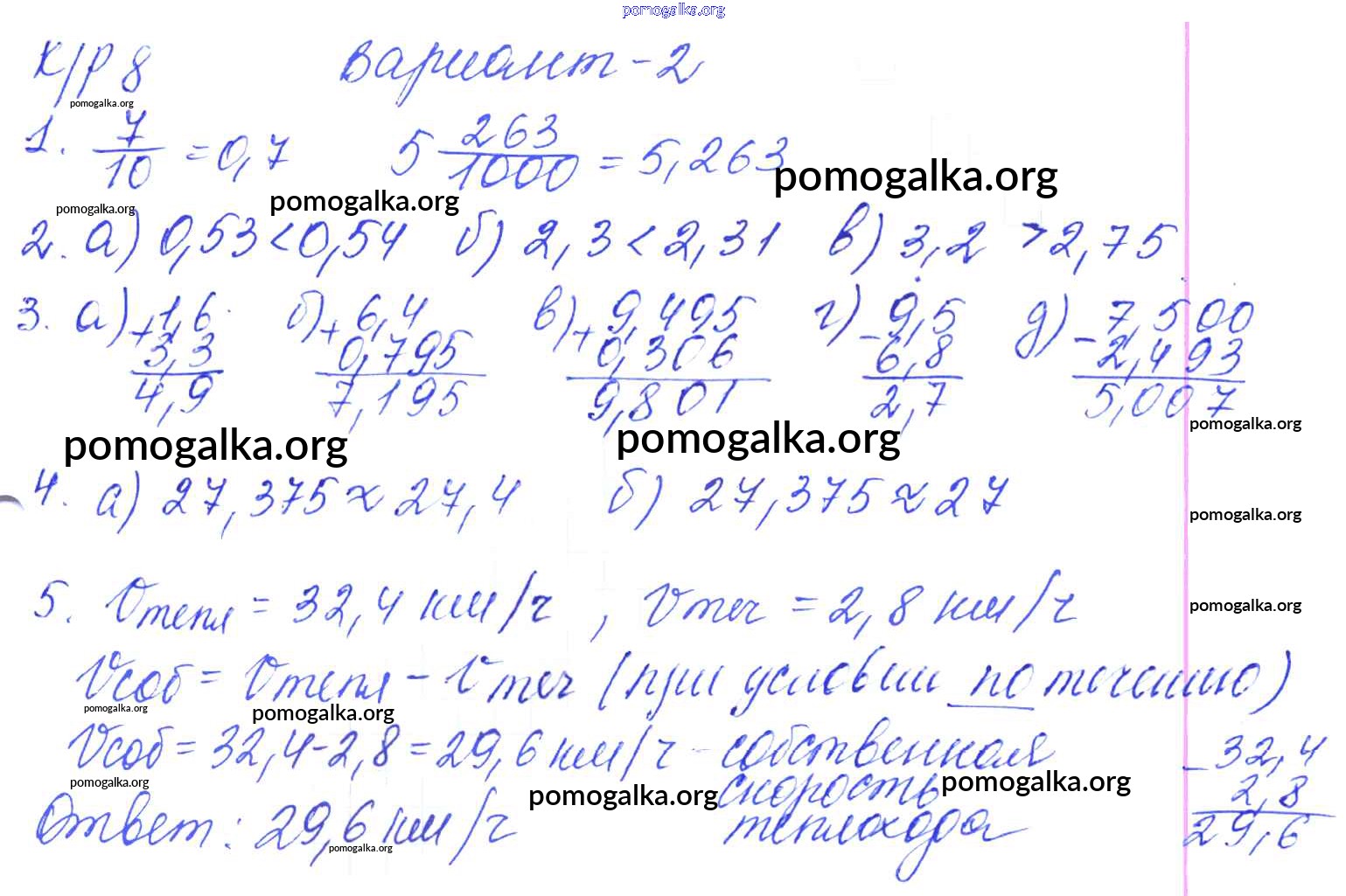 Готовые ответы - Математика 5 класс контрольные работы Дудницын Ю.П. - кр-8. вариант 2