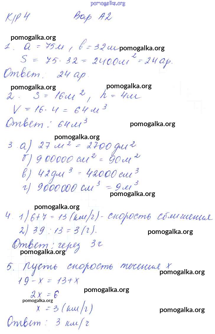 Готовые ответы - Математика 5 класс контрольные работы Ерина Т.М. ( к уч. Никольского С.М.) - кр-4. вариант 2