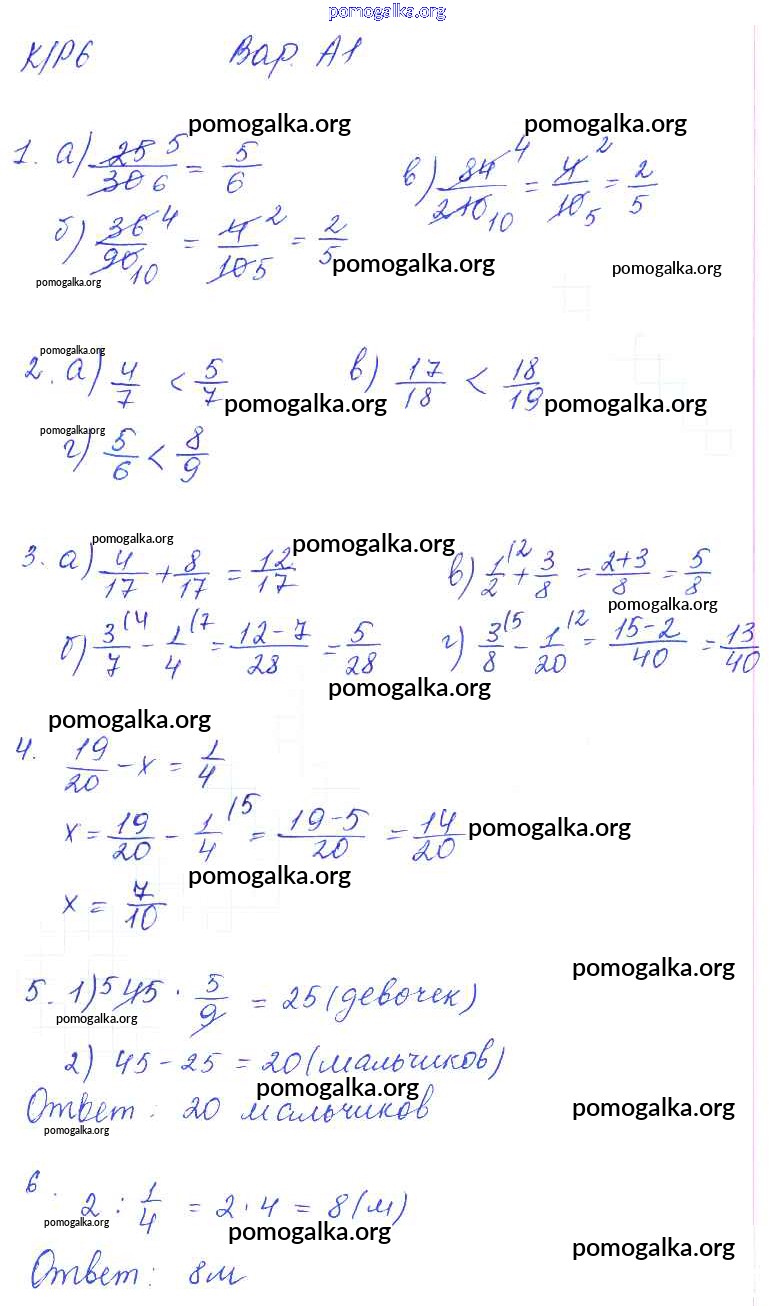 Готовые ответы - Математика 5 класс контрольные работы Ерина Т.М. ( к уч. Никольского С.М.) - кр-6. вариант 1
