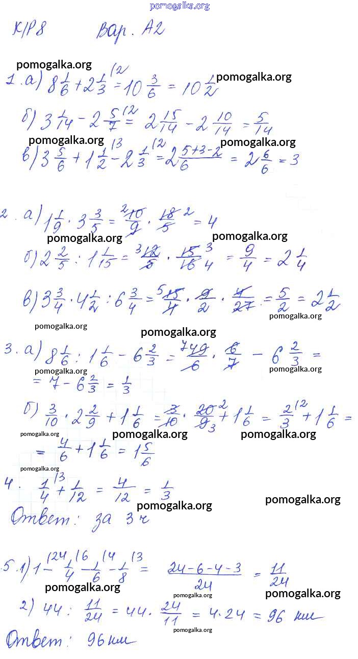 Готовые ответы - Математика 5 класс контрольные работы Ерина Т.М. ( к уч. Никольского С.М.) - кр-8. вариант 2