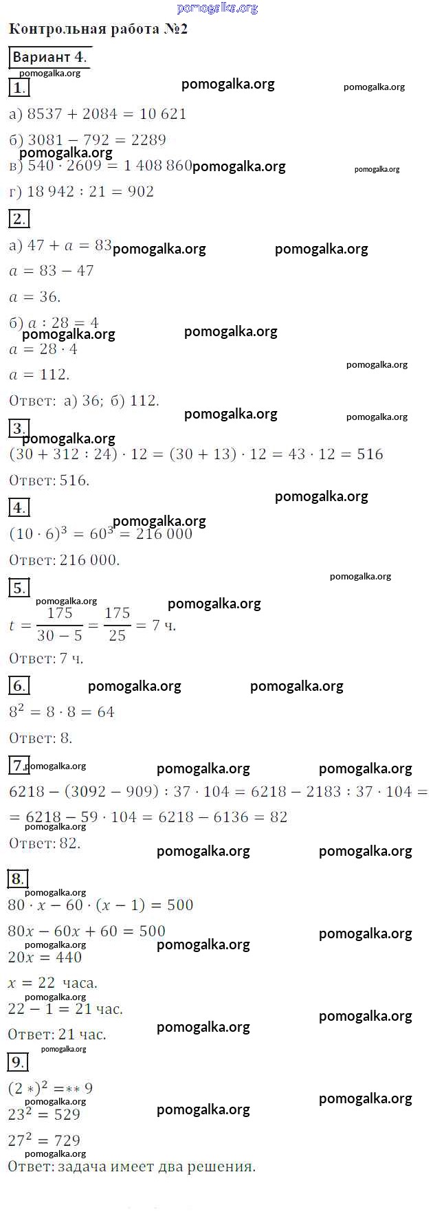 Готовые ответы - Математика 5 класс контрольные работы Кузнецова Л.В. - кр №2 4