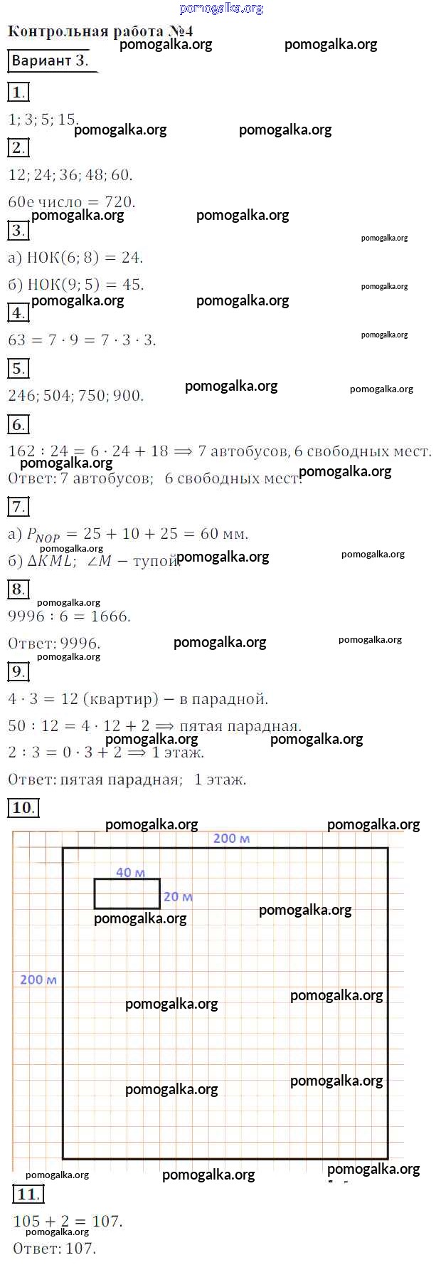 Готовые ответы - Математика 5 класс контрольные работы Кузнецова Л.В. - кр №4 3