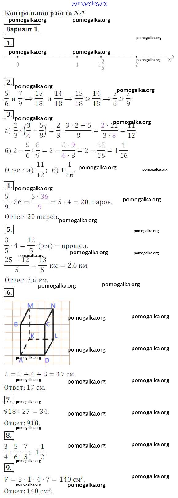 Готовые ответы - Математика 5 класс контрольные работы Кузнецова Л.В. - кр №7 1