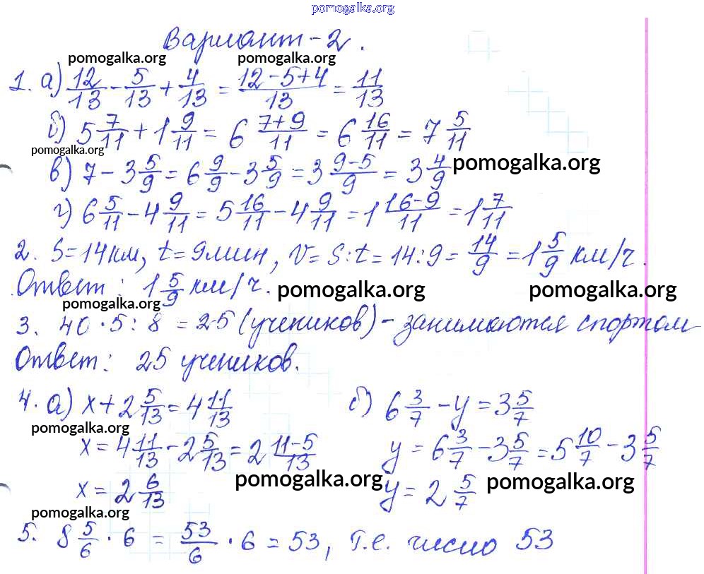 Готовые ответы - Математика 5 класс контрольные работы Жохов В.И. - кр-8. вариант 2