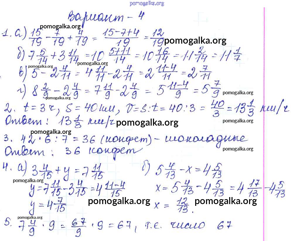 Готовые ответы - Математика 5 класс контрольные работы Жохов В.И. - кр-8. вариант 4