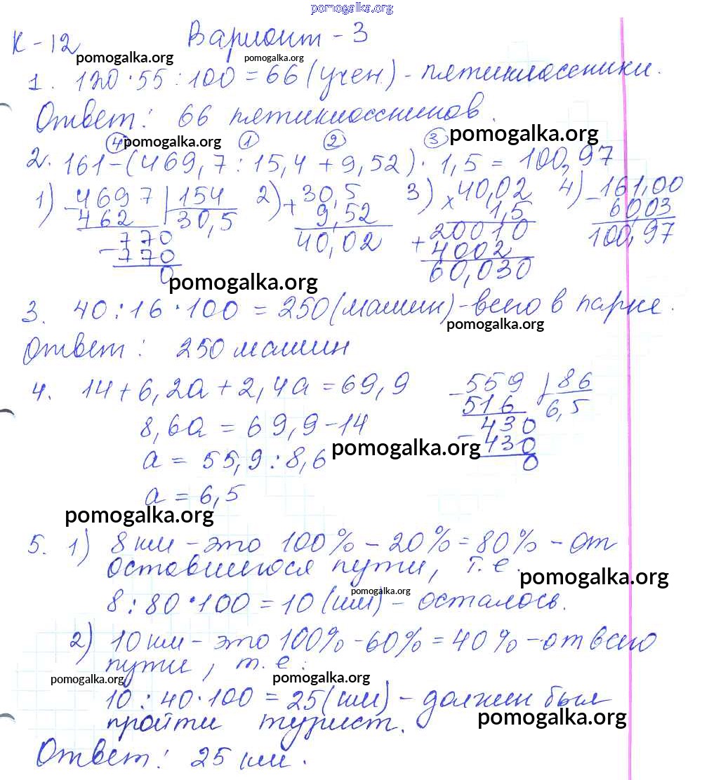 Готовые ответы - Математика 5 класс контрольные работы Жохов В.И. - кр-12. вариант 3