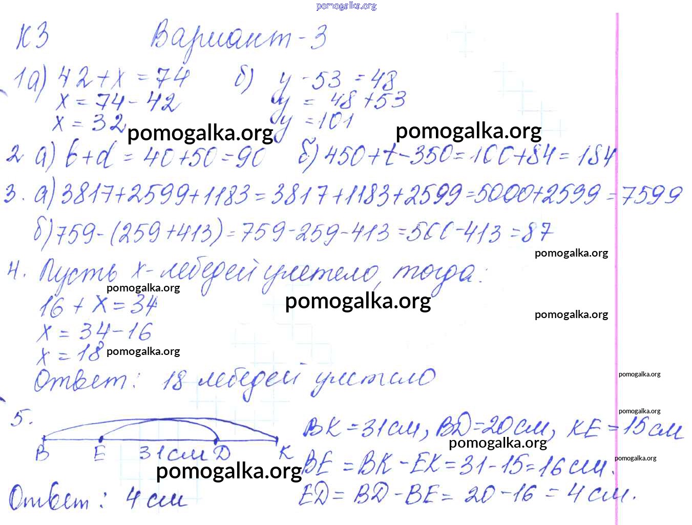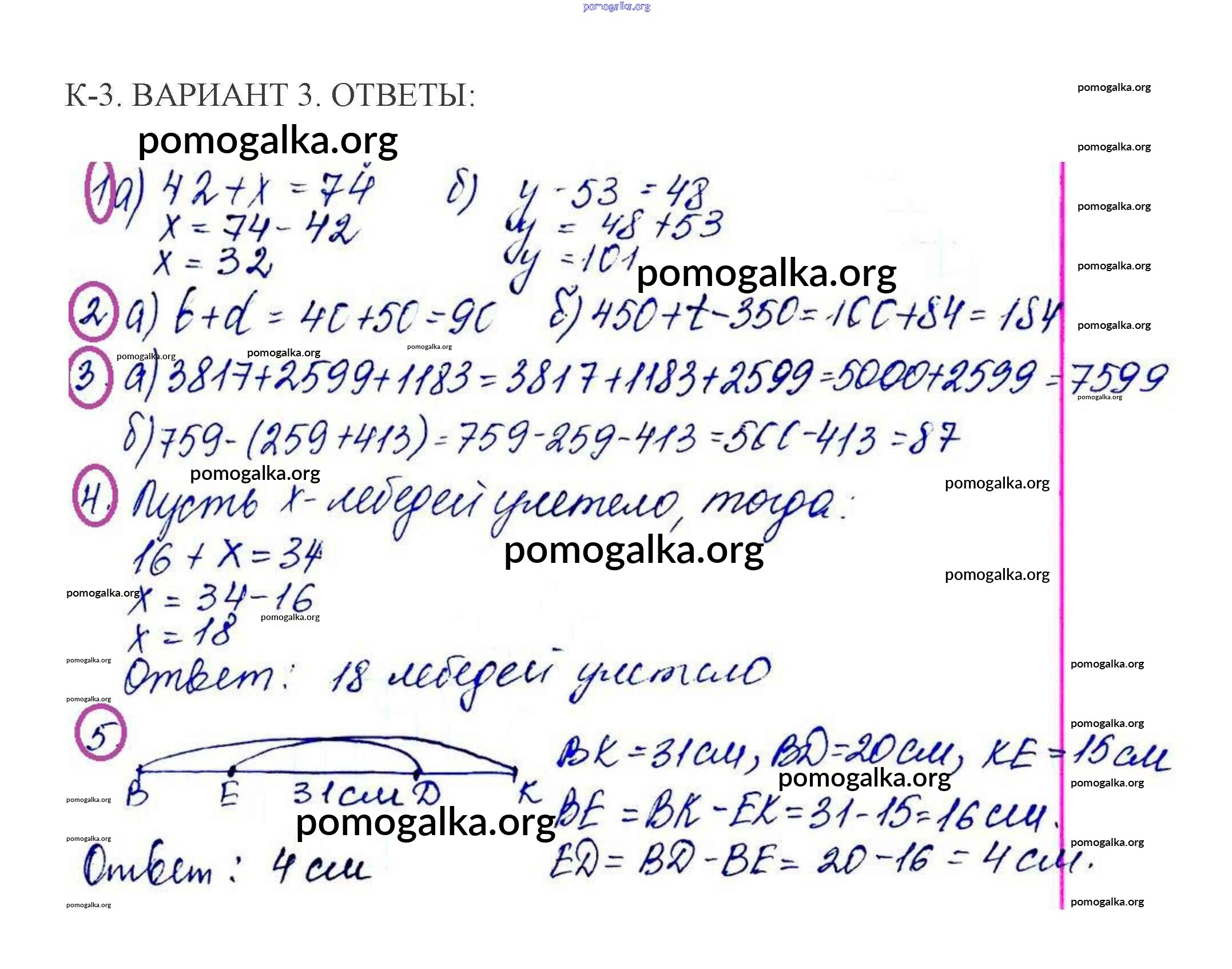 Готовые ответы - Математика 5 класс контрольные работы Жохов В.И. - кр-3. вариант 3