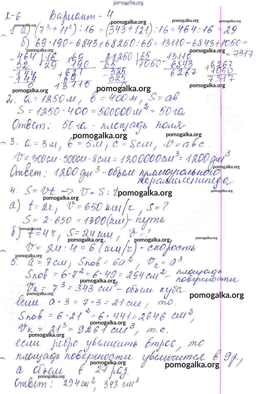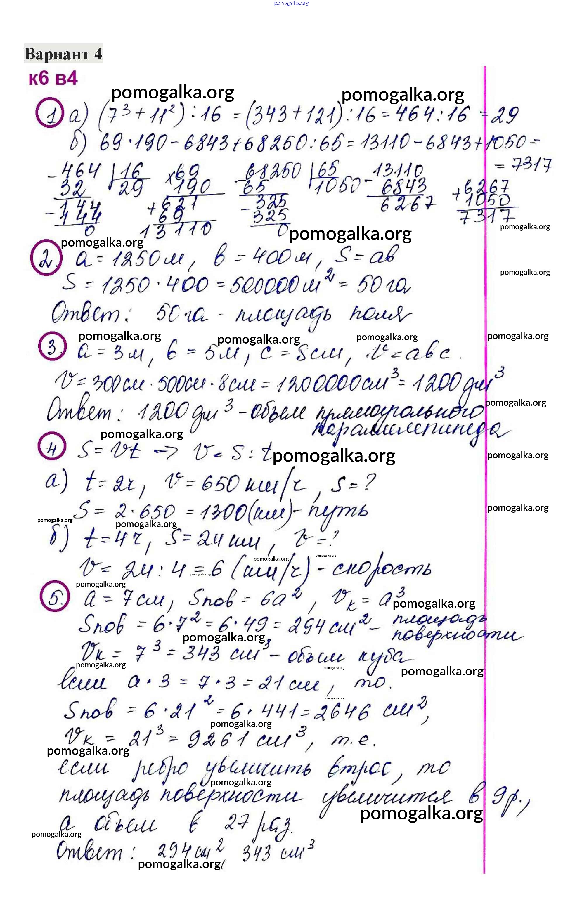 Готовые ответы - Математика 5 класс контрольные работы Жохов В.И. - кр-6. вариант 4