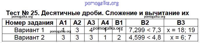 Готовые ответы - Математика 5 класс Контрольно-измерительные материалы Попова Л.П. - тест 25