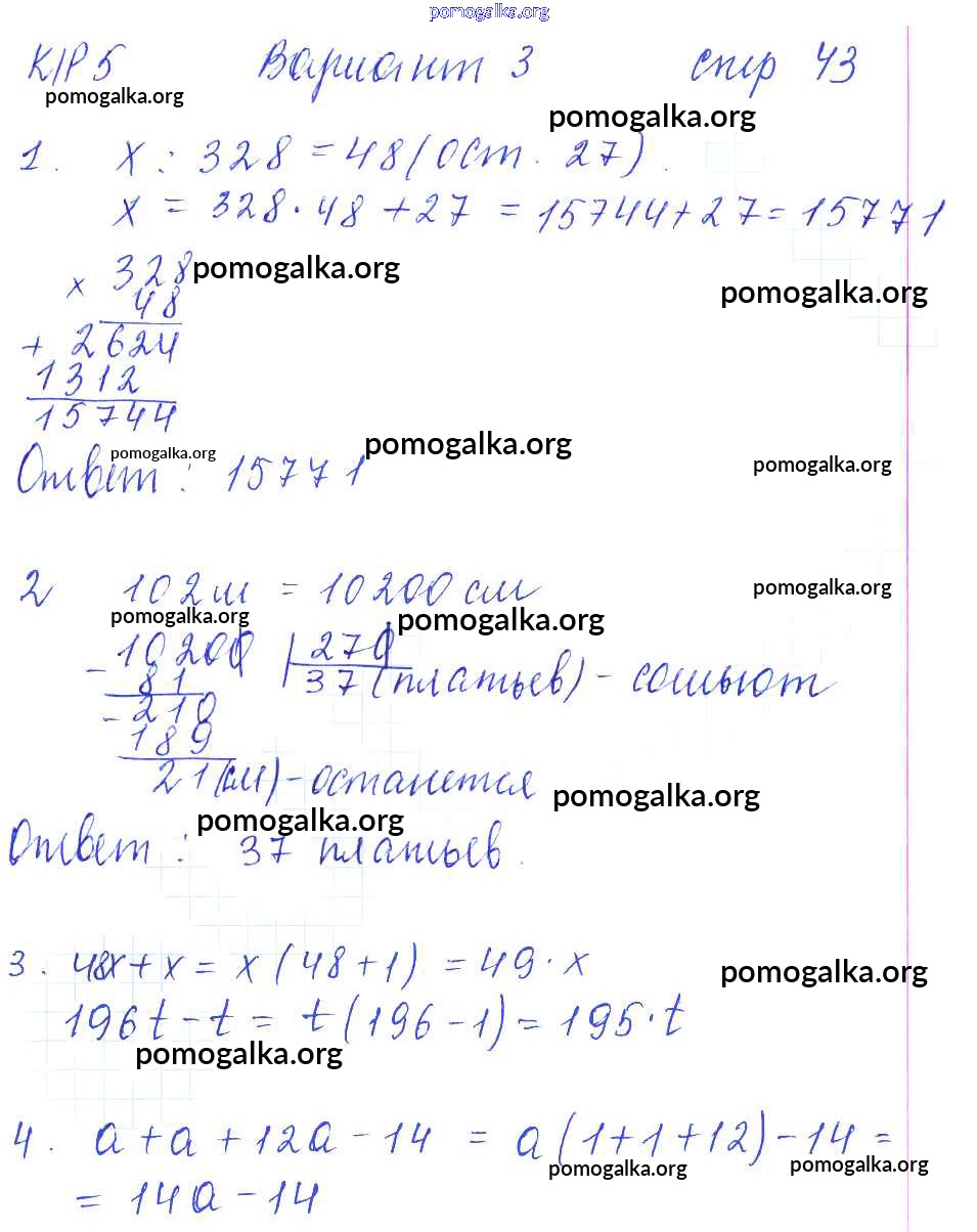 Готовые ответы - Математика 5 класс рабочая тетрадь для контрольных работ Рудницкая В.Н. (к уч. Виленкина Н.Я.) - часть 1. страница 43