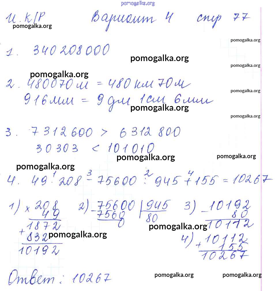Готовые ответы - Математика 5 класс рабочая тетрадь для контрольных работ Рудницкая В.Н. (к уч. Виленкина Н.Я.) - часть 1. страница 77