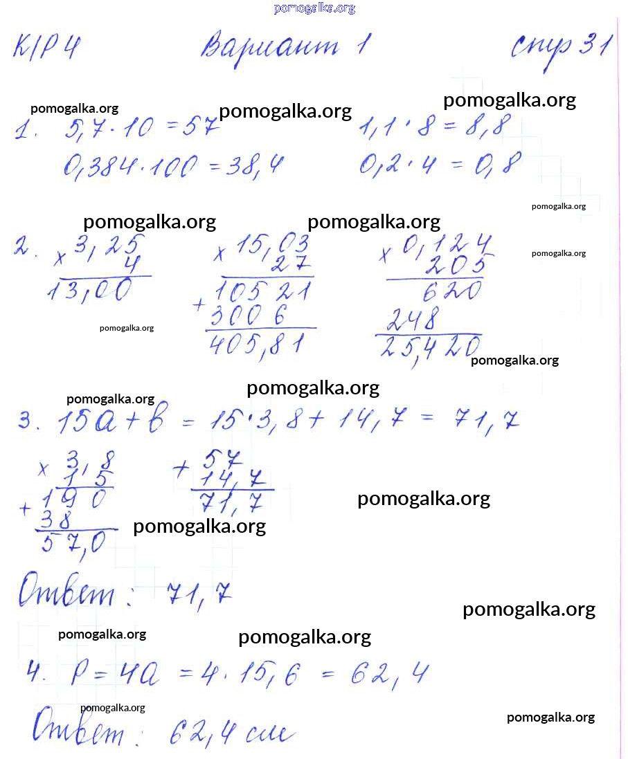Готовые ответы - Математика 5 класс рабочая тетрадь для контрольных работ Рудницкая В.Н. (к уч. Виленкина Н.Я.) - часть 2. страница 31
