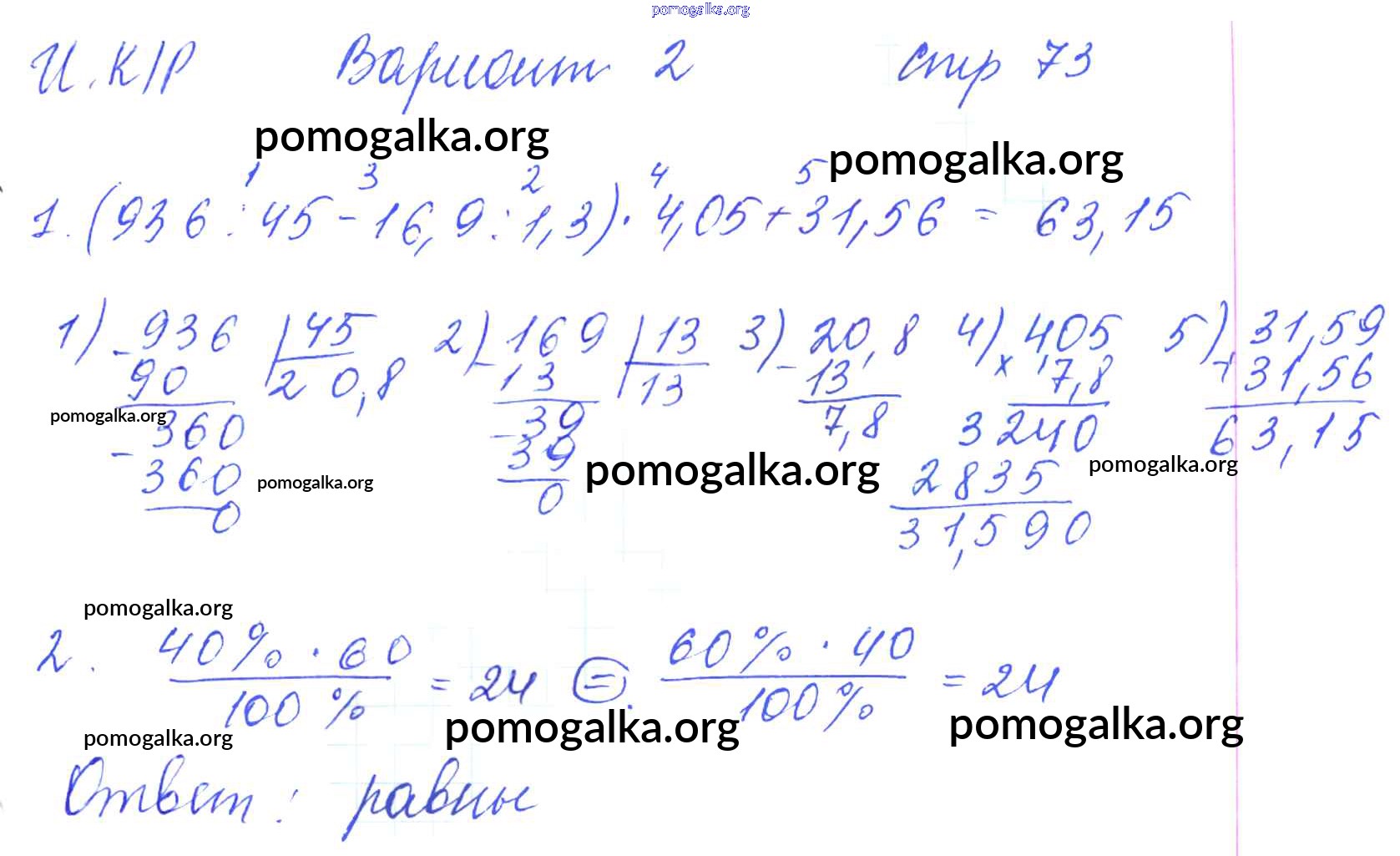 Готовые ответы - Математика 5 класс рабочая тетрадь для контрольных работ Рудницкая В.Н. (к уч. Виленкина Н.Я.) - часть 2. страница 73
