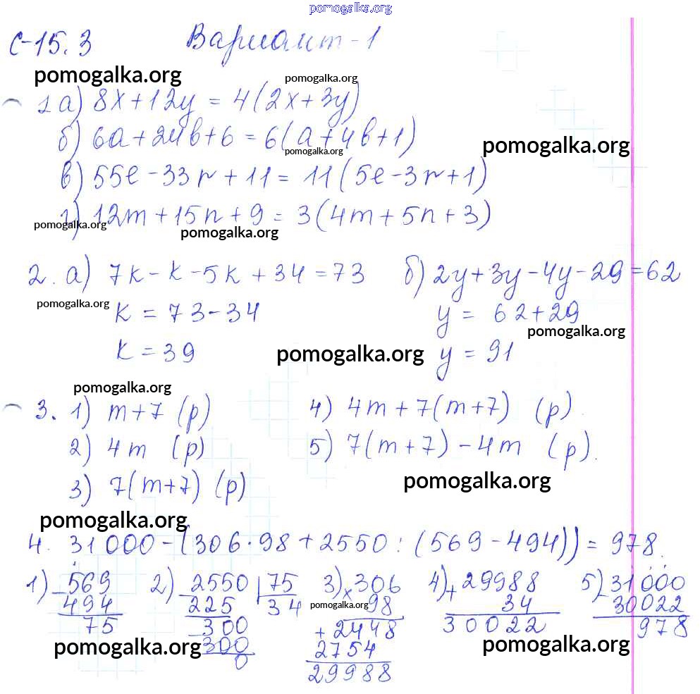 Готовые ответы - Математика 5 класс самостоятельные работы Зубарева И.И. - СР-15.3 1