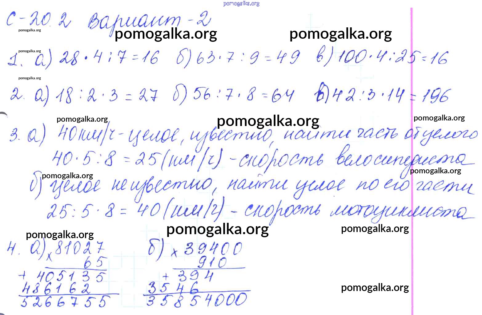 Готовые ответы - Математика 5 класс самостоятельные работы Зубарева И.И. - СР-20.2 2