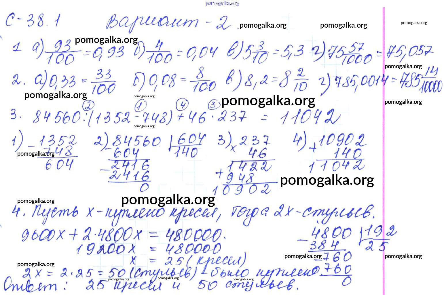 Готовые ответы - Математика 5 класс самостоятельные работы Зубарева И.И. - СР-38.1 2