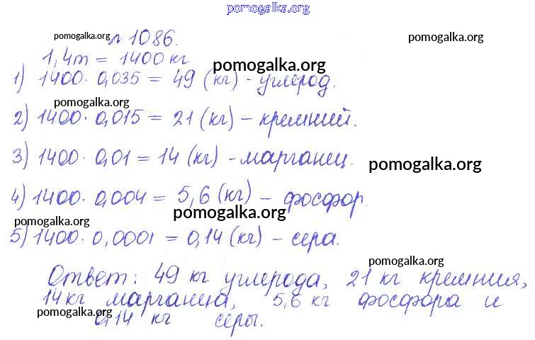 Готовые ответы - Математика 5 класс Сборник задач и упражнений Гамбарин В.Г. - задача 1086