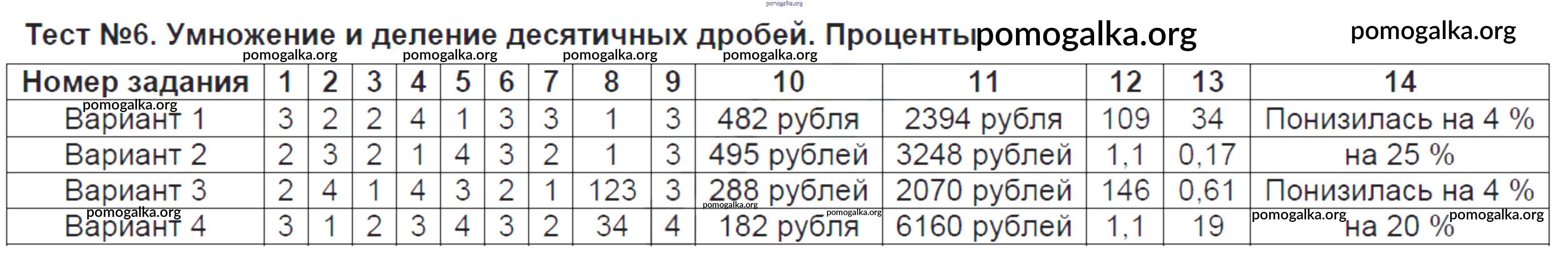 Готовые ответы - Математика 5 класс тесты Ерина Т.М. (к уч. Мерзляка) - тест 6