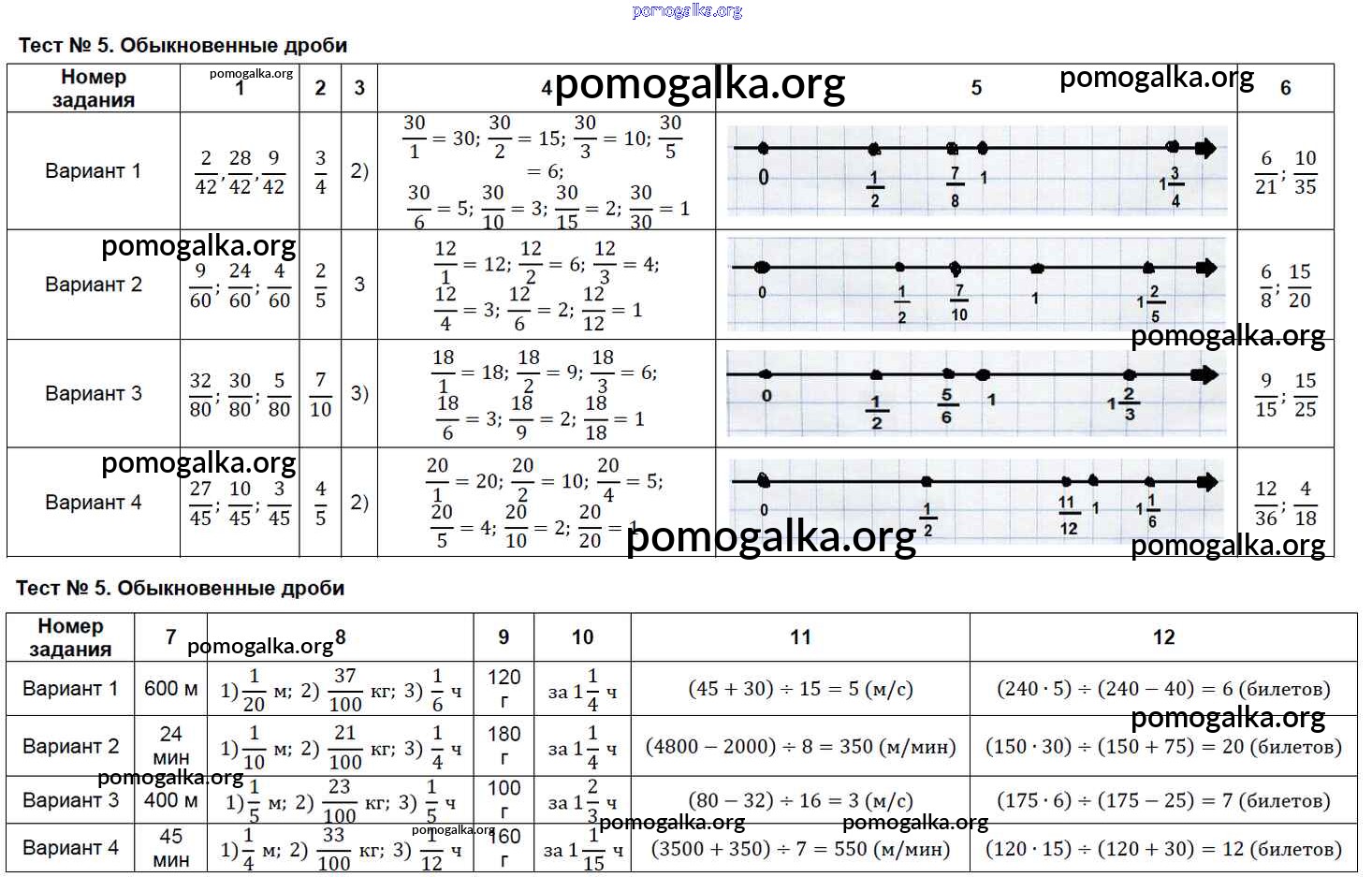 Готовые ответы - Математика 5 класс Тесты Минаева С.С. - тест 5