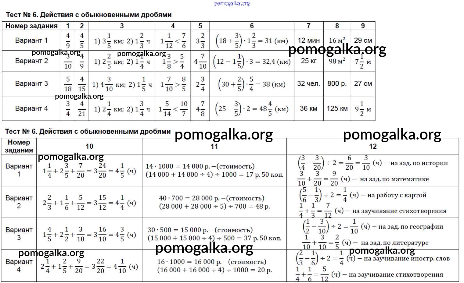 Готовые ответы - Математика 5 класс Тесты Минаева С.С. - тест 6