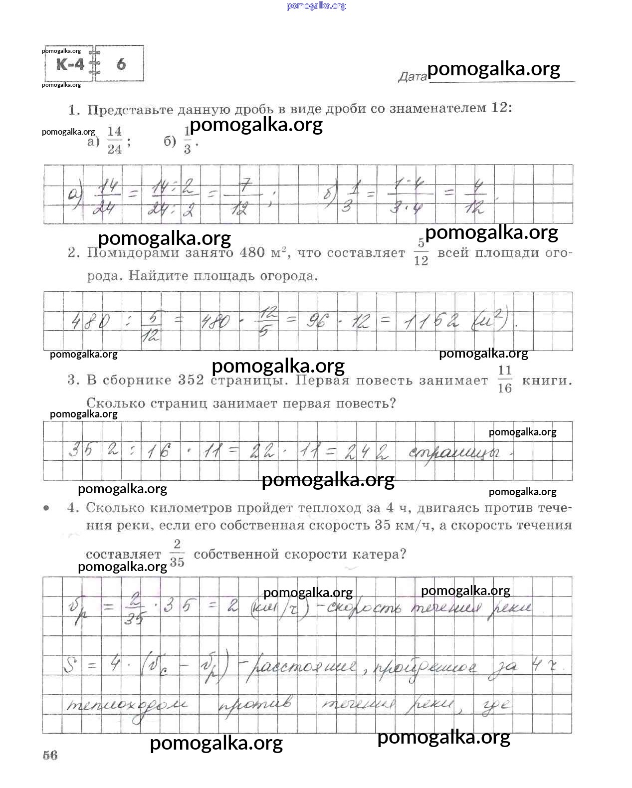 Готовые ответы - Математика 5 класс тетрадь для контрольных работ Зубарева И.И. - часть 1. страница 56