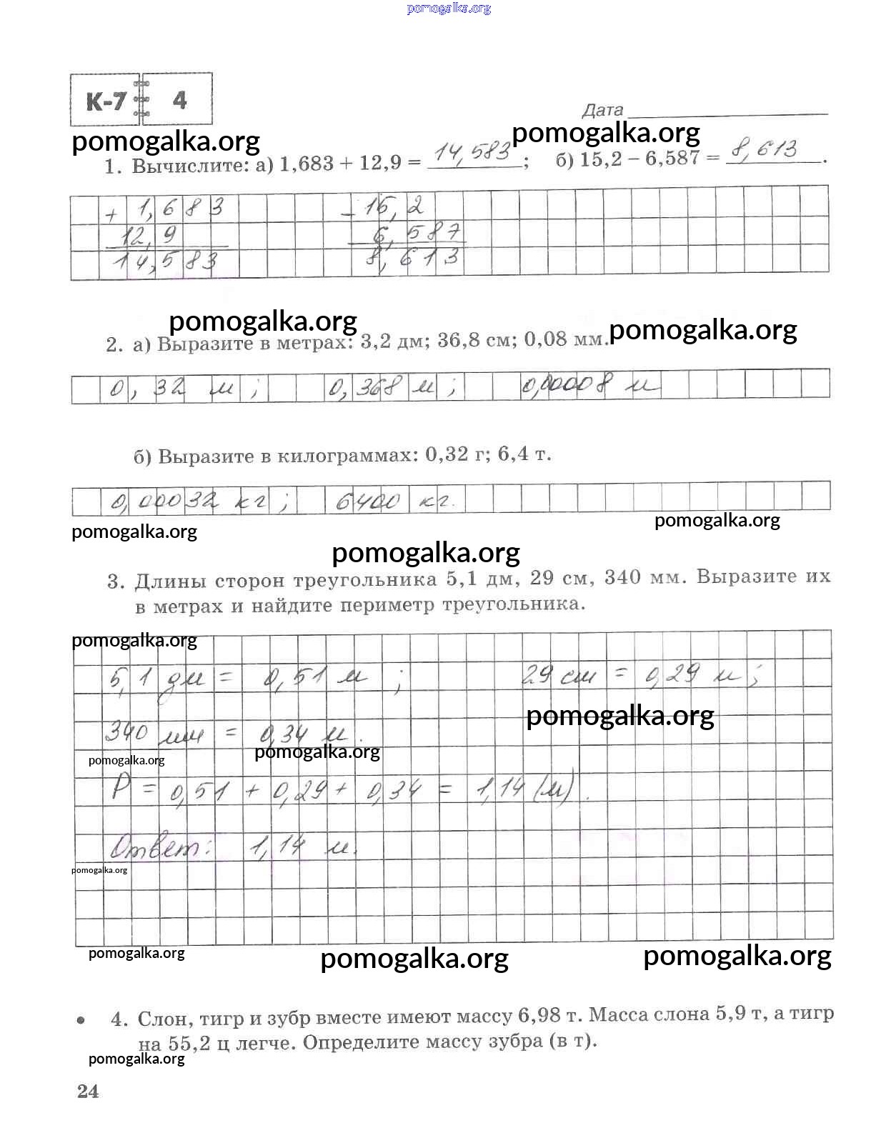 Готовые ответы - Математика 5 класс тетрадь для контрольных работ Зубарева И.И. - часть 2. страница 24
