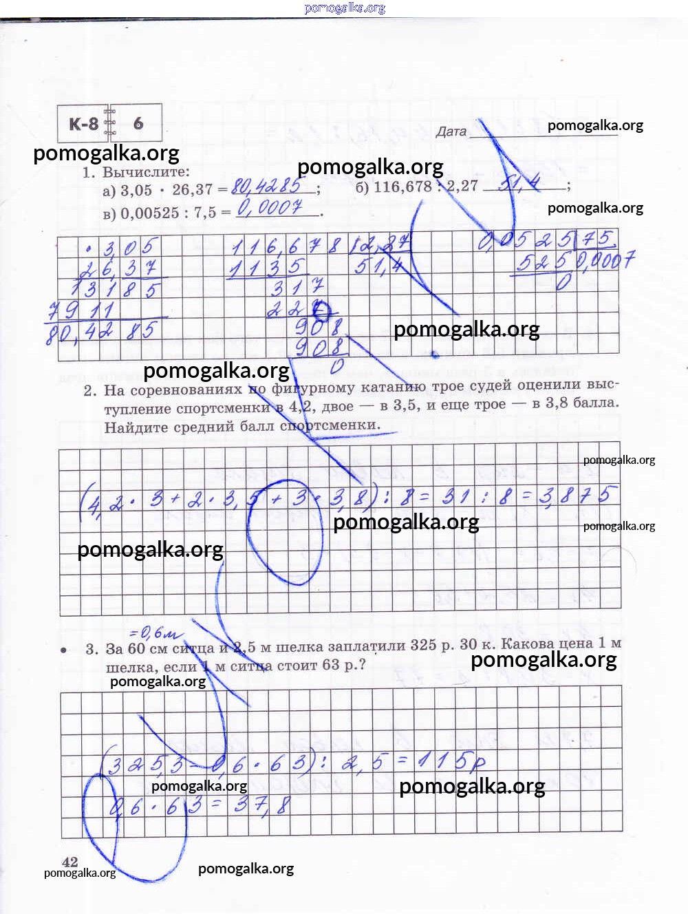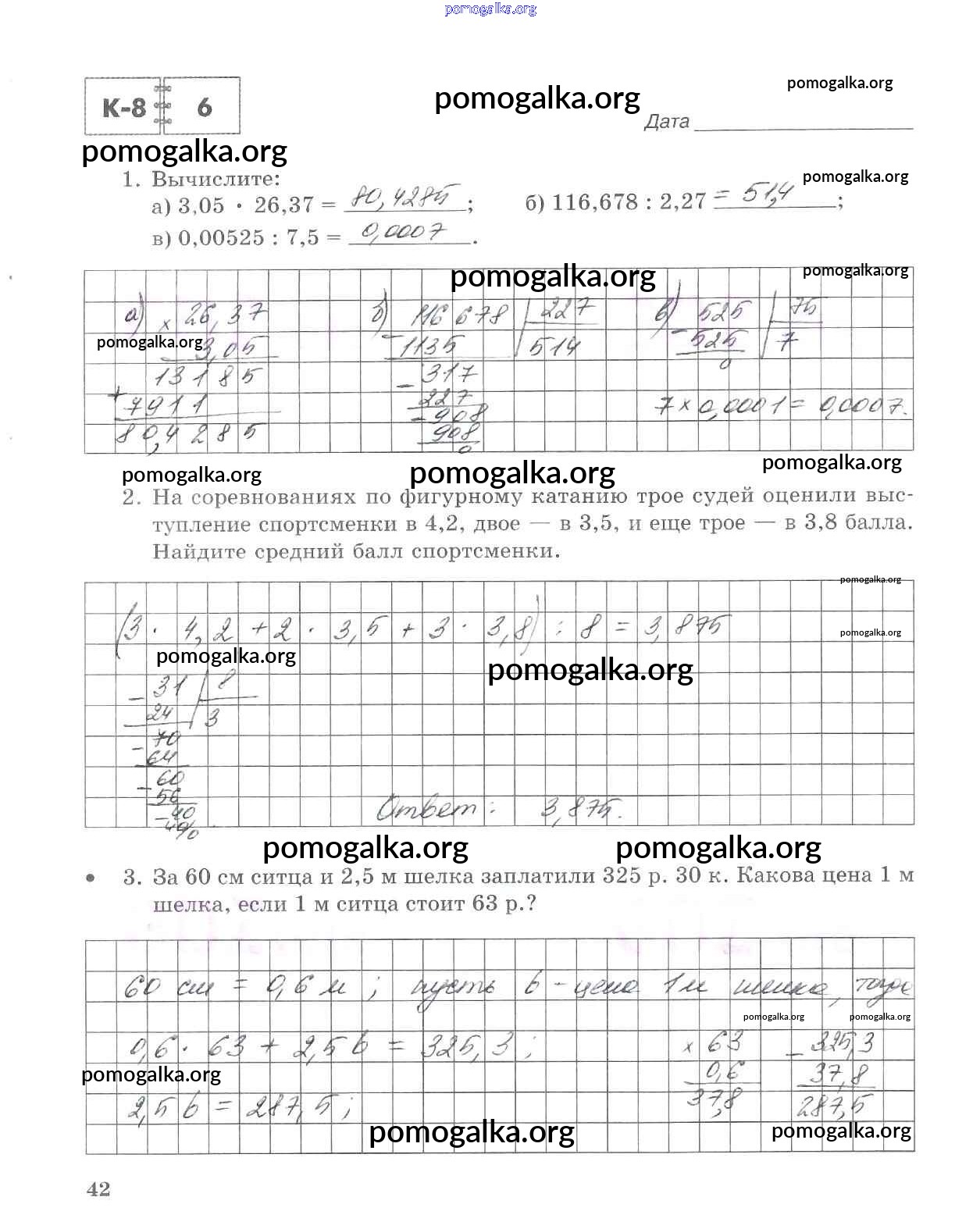 Готовые ответы - Математика 5 класс тетрадь для контрольных работ Зубарева И.И. - часть 2. страница 42