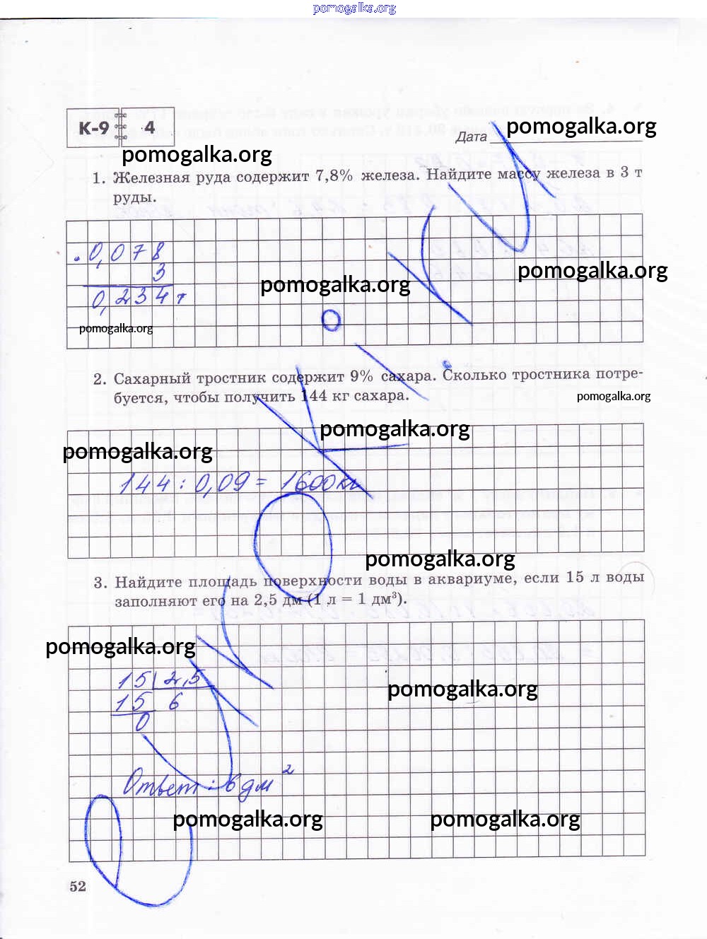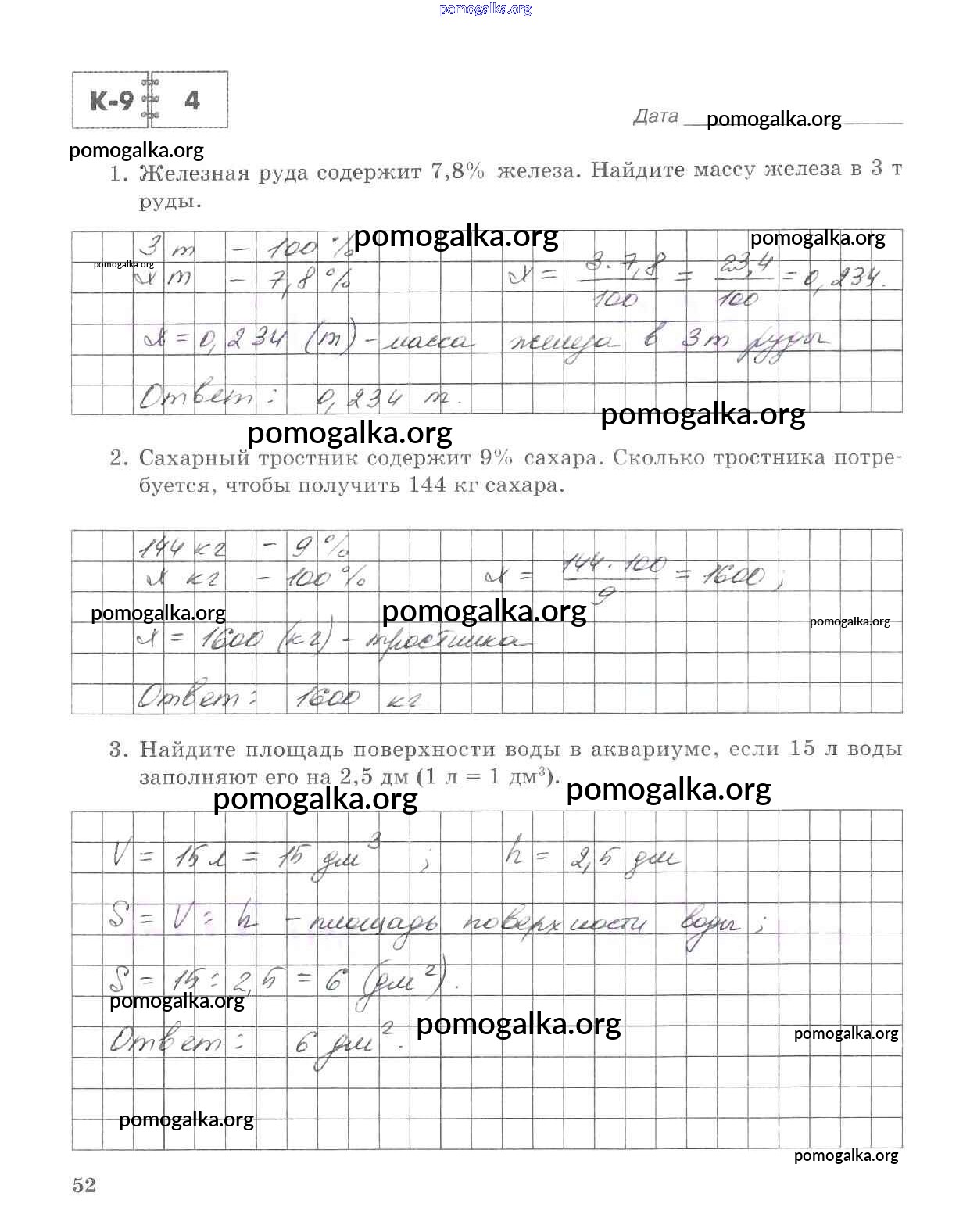 Готовые ответы - Математика 5 класс тетрадь для контрольных работ Зубарева И.И. - часть 2. страница 52