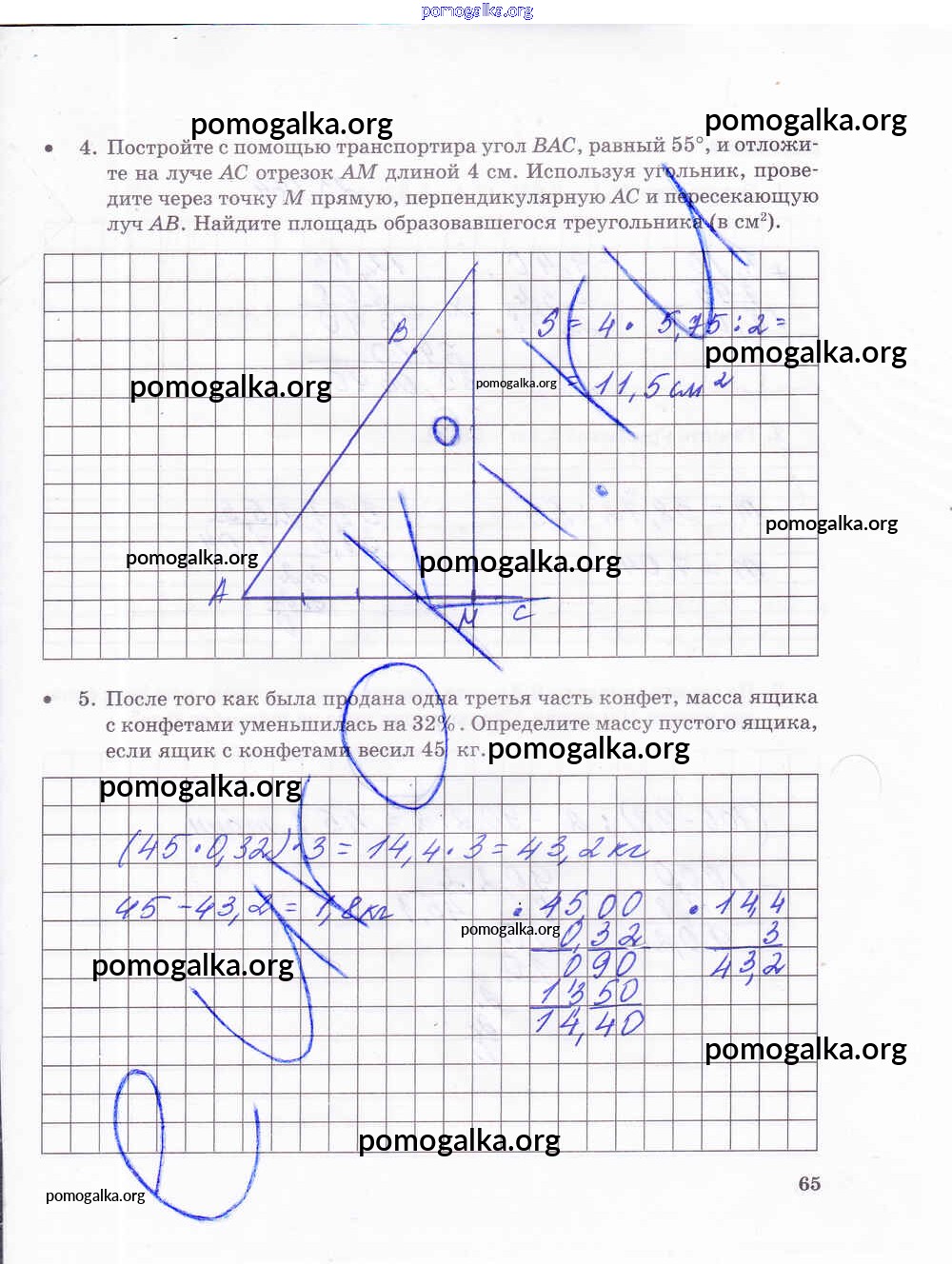 Готовые ответы - Математика 5 класс тетрадь для контрольных работ Зубарева И.И. - часть 2. страница 65