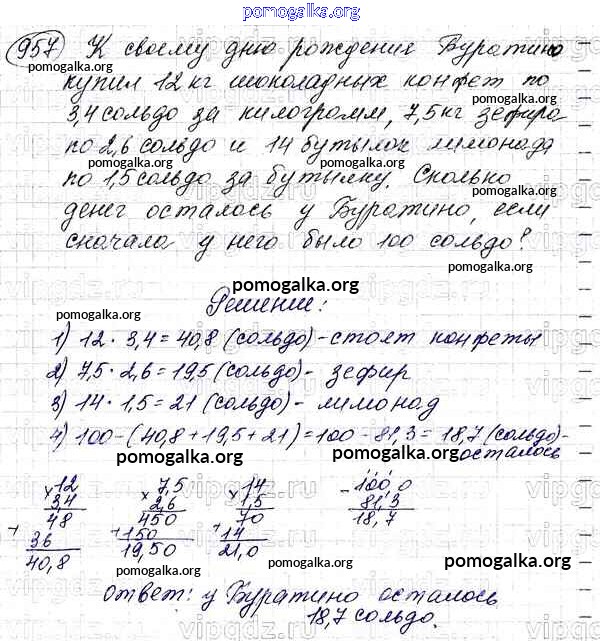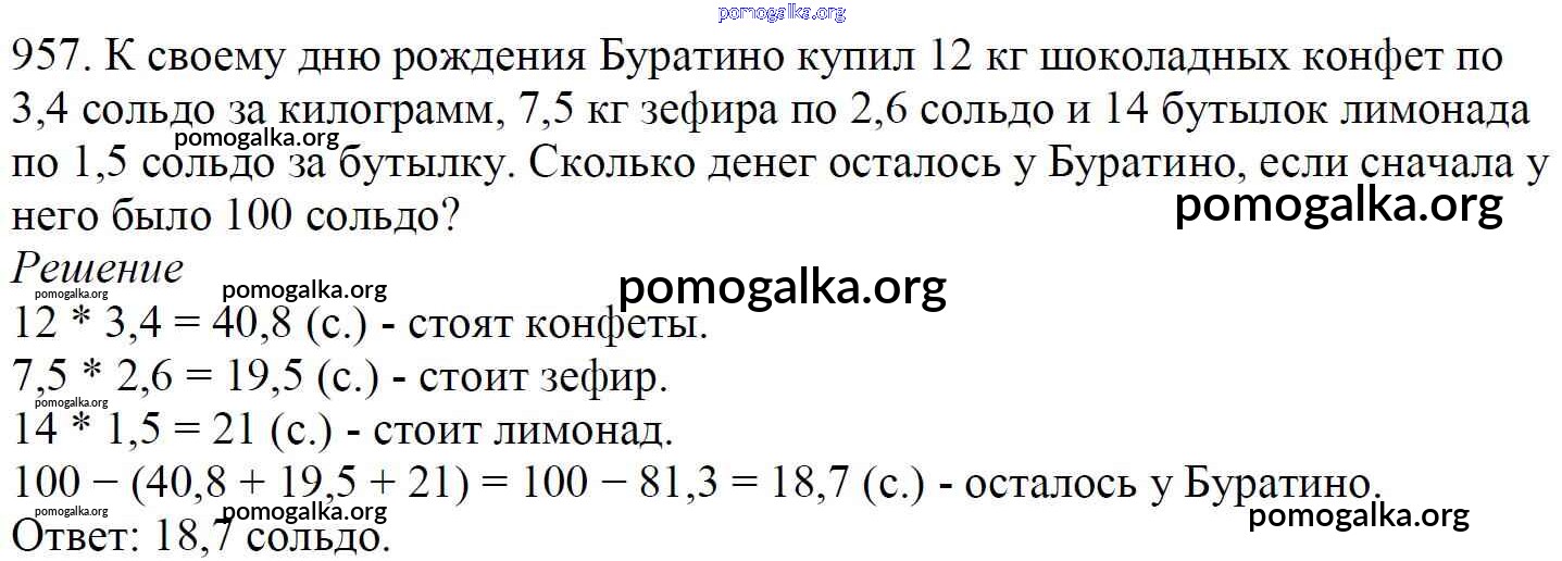 Готовые ответы - Математика 5 класс Мерзляк А.Г. - §34 глава 5 957