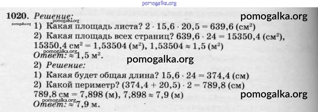 Готовые ответы - Математика 5 класс Петерсон Л.Г. - часть 2. упражнение 1020