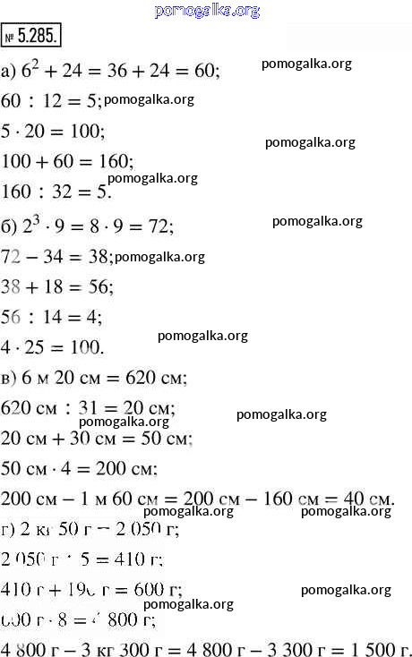 Готовые ответы - Математика 5 класс Виленкин Н.Я. - глава 5 часть 2 5.285
