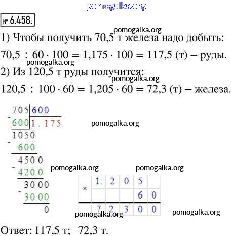 Готовые ответы - Математика 5 класс Виленкин Н.Я. - глава 6 часть 2 6.458