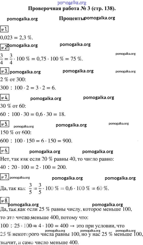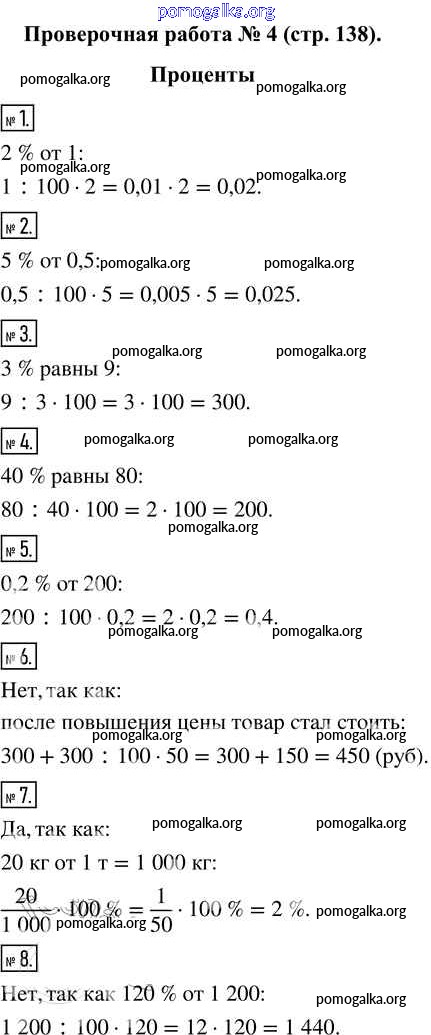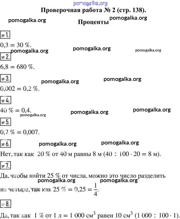 Готовые ответы - Математика 5 класс Виленкин Н.Я. - проверочная работа часть 2 стр.138