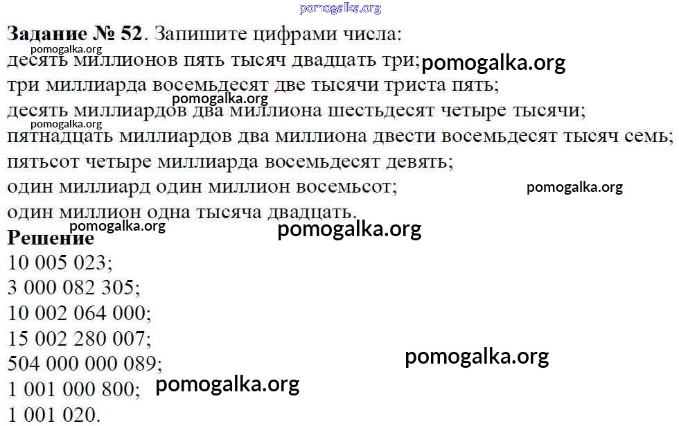 Готовые ответы - Математика 5 класс Виленкин Н.Я. - глава 1 52